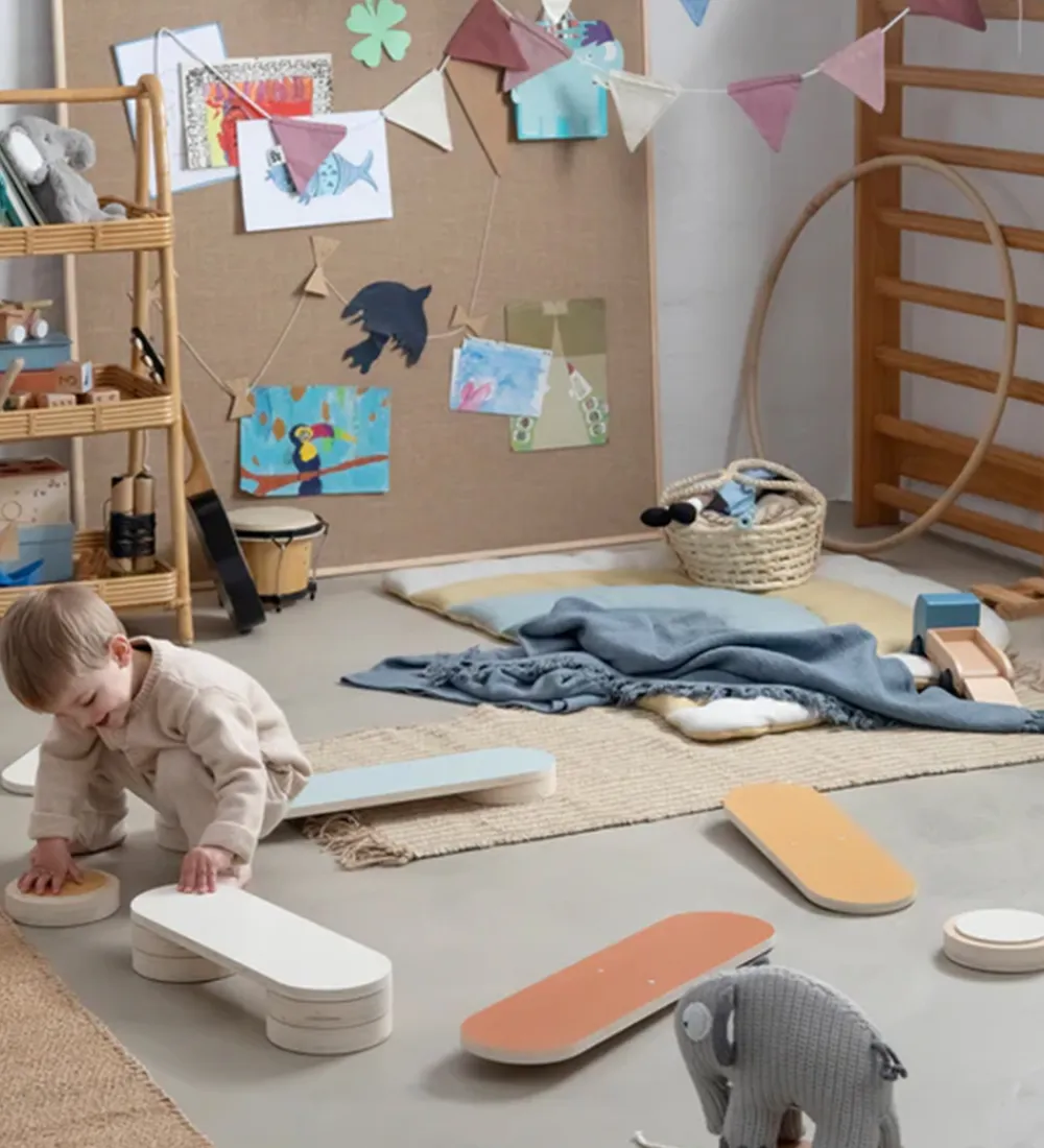 Sebra balancebanen består af 3 lange plader med en buet underside, 2 korte plader og 8 runde trædesten. Nu kan der bygges en sjov balancebane, hvor man selv bestemmer sværhedsgraden.