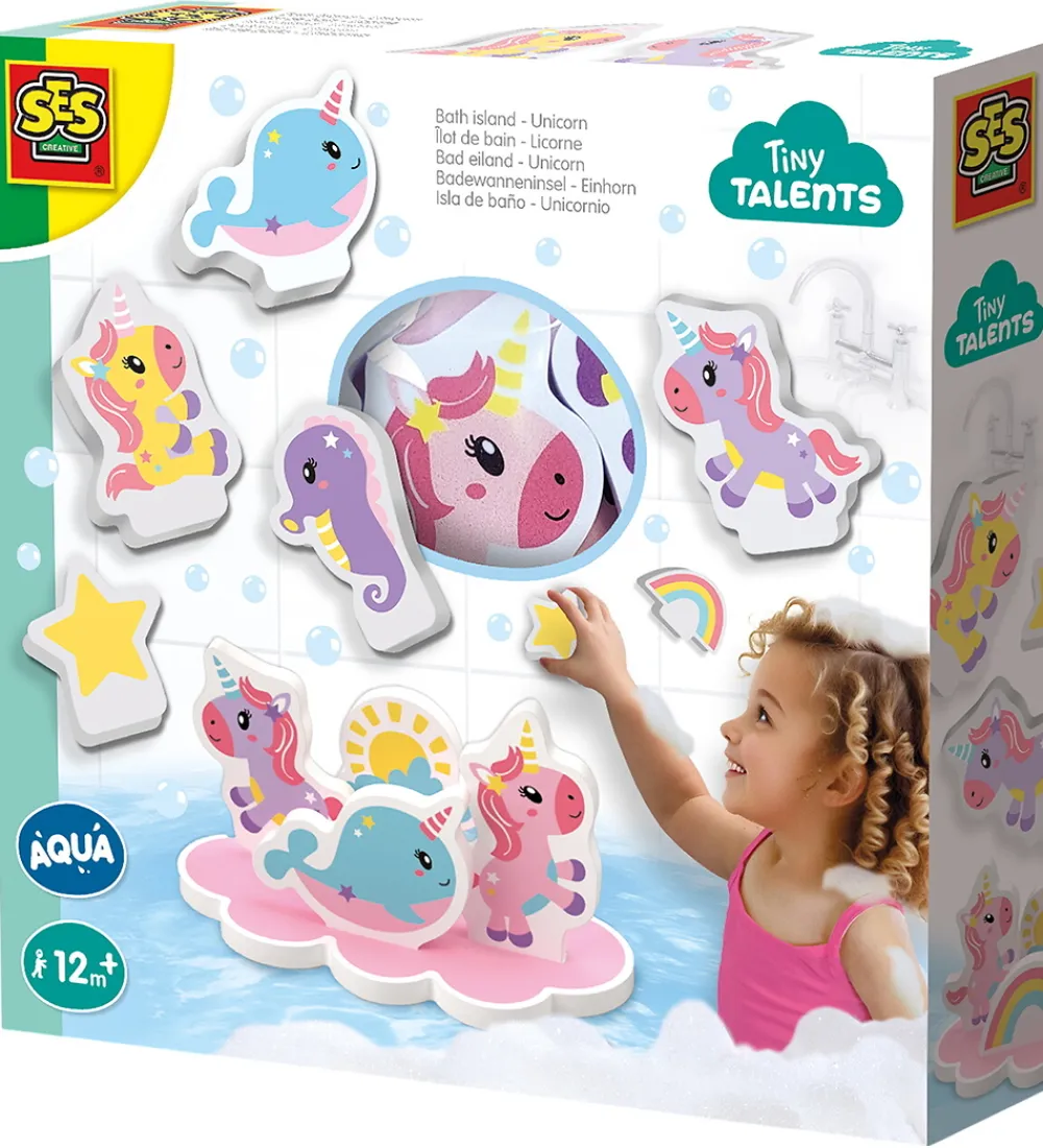Charmerende SES Creative badelegetøj i lyse farver med enhjørninger og regnbuer. Indbyder til masser af kreativ leg i badet. SES Creative sikrer timevis af sjov med flotte figurer, der flyder på vandet.
