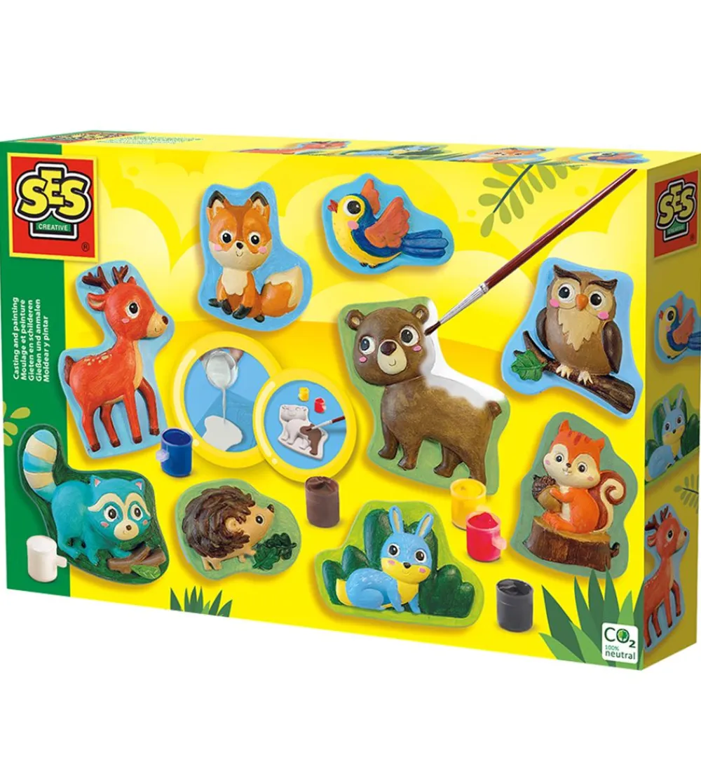 SES Creative støbe og malesættet er perfekt til de kreative små, som vil skabe deres egen leg. Med sættet kan man støbe forskellige skovdyr, som derefter kan males i smukke farver.