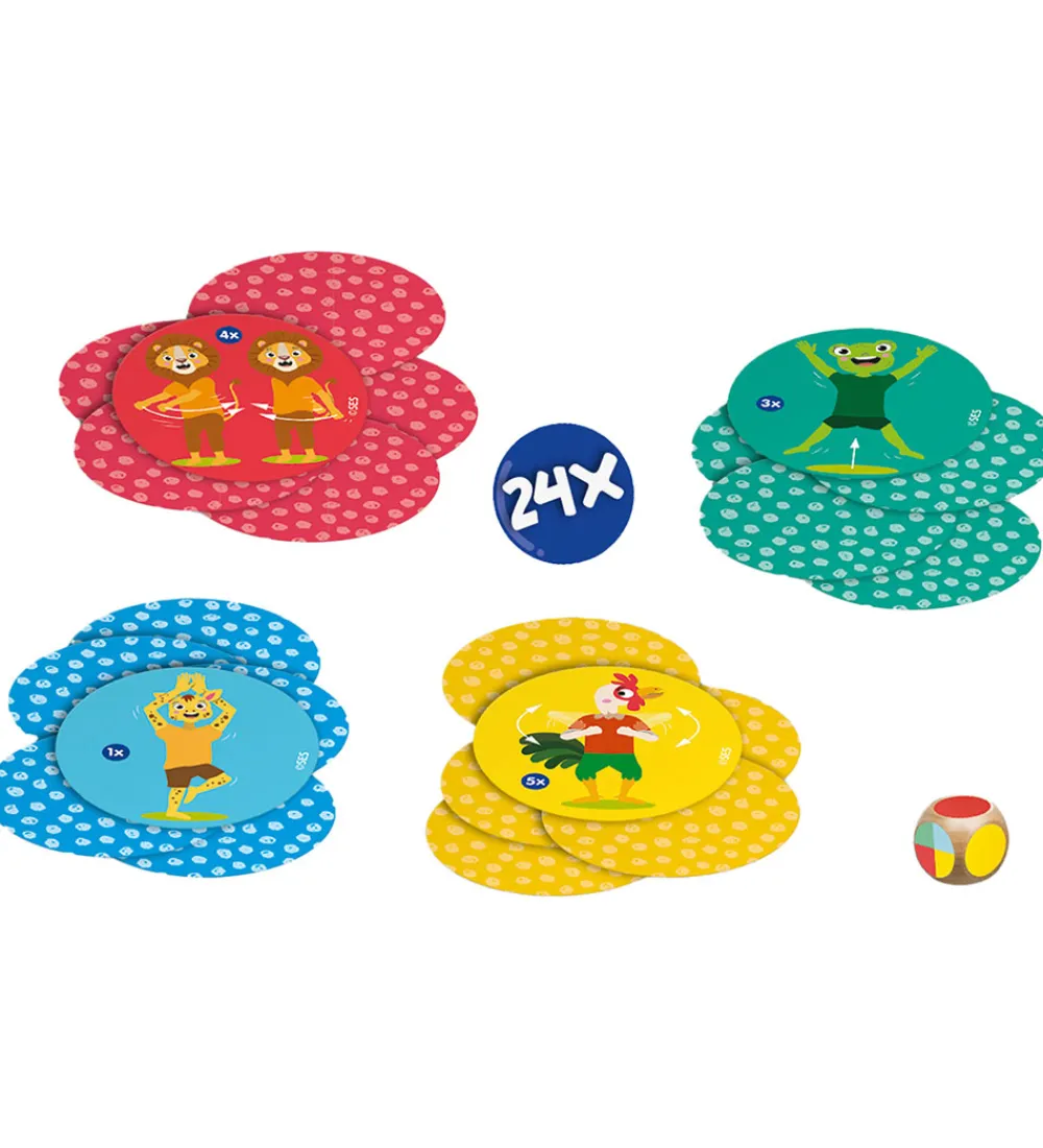 Sjovt spil hvor børn kan bevæge sig med sjove dyrebevægelser. Spillekortene viser flere søde dyrekarakterer, som man skal danse som. Perfekt til aktiv leg og kreativ bevægelse.