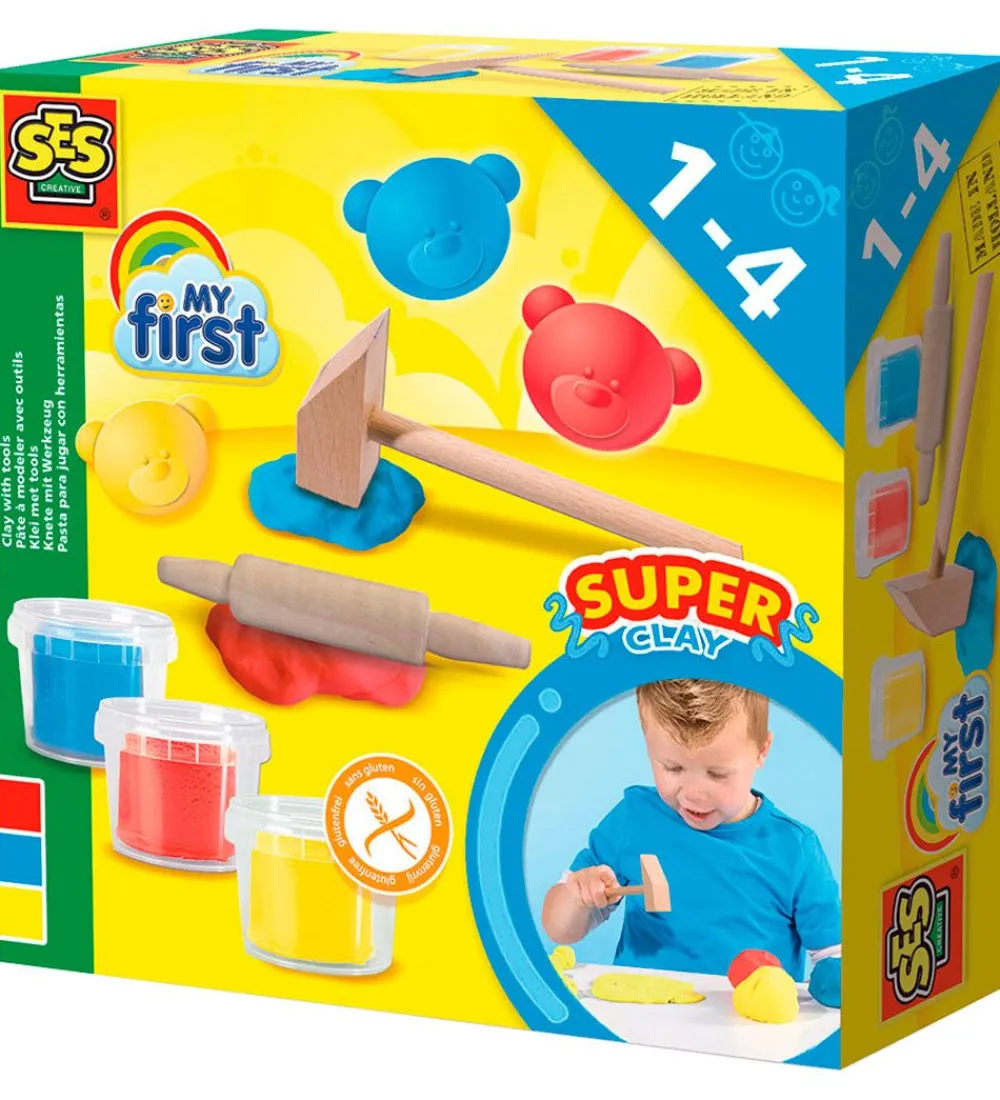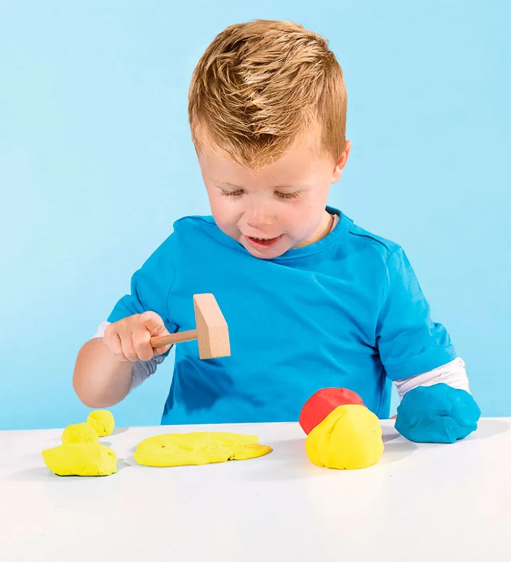 SES Creative sættet er sjovt for de helt små, som skal lege med modellervoks for første gang. Barnet kan lave forskellige former ved at hamre og rulle det fladt.