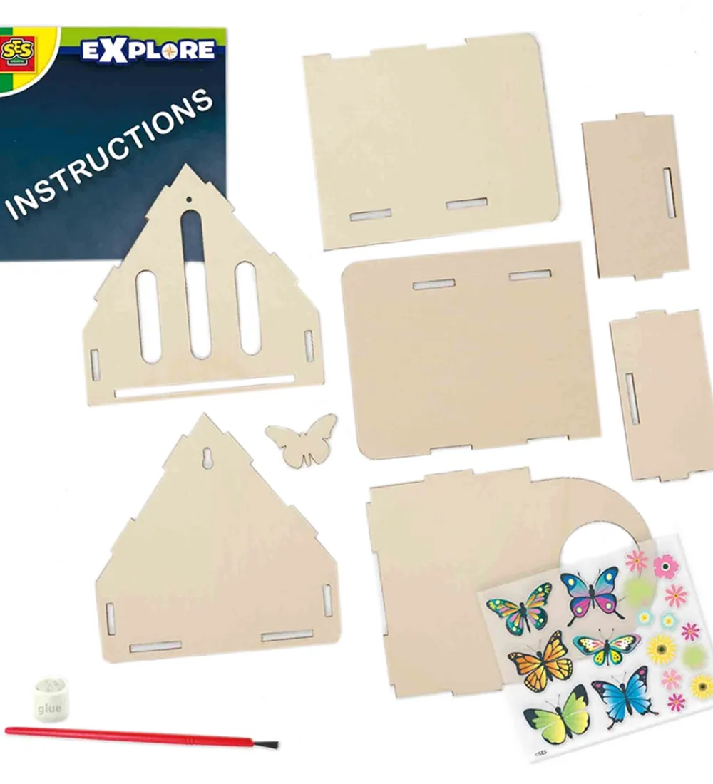 Sødt SES Creative insekthotel der let kan bygges og dekoreres flot med klistermærker, og når hotellet er bygget er der blevet skabt et sikkert sted for sommefuglene. Man kan fylde hotellet med naturlige elementer og sirup der tiltrækker de smukke sommerfugle.