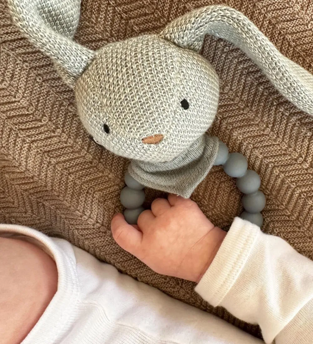 Smallstuff biderranglen består af en del i silikone og en del i bomuld. Ringen i bunden består af en række af små cirkler, som er gode for gummer og tænder, mens delen i toppen er en sød bamse med en rangle, som laver beroligende lyde.