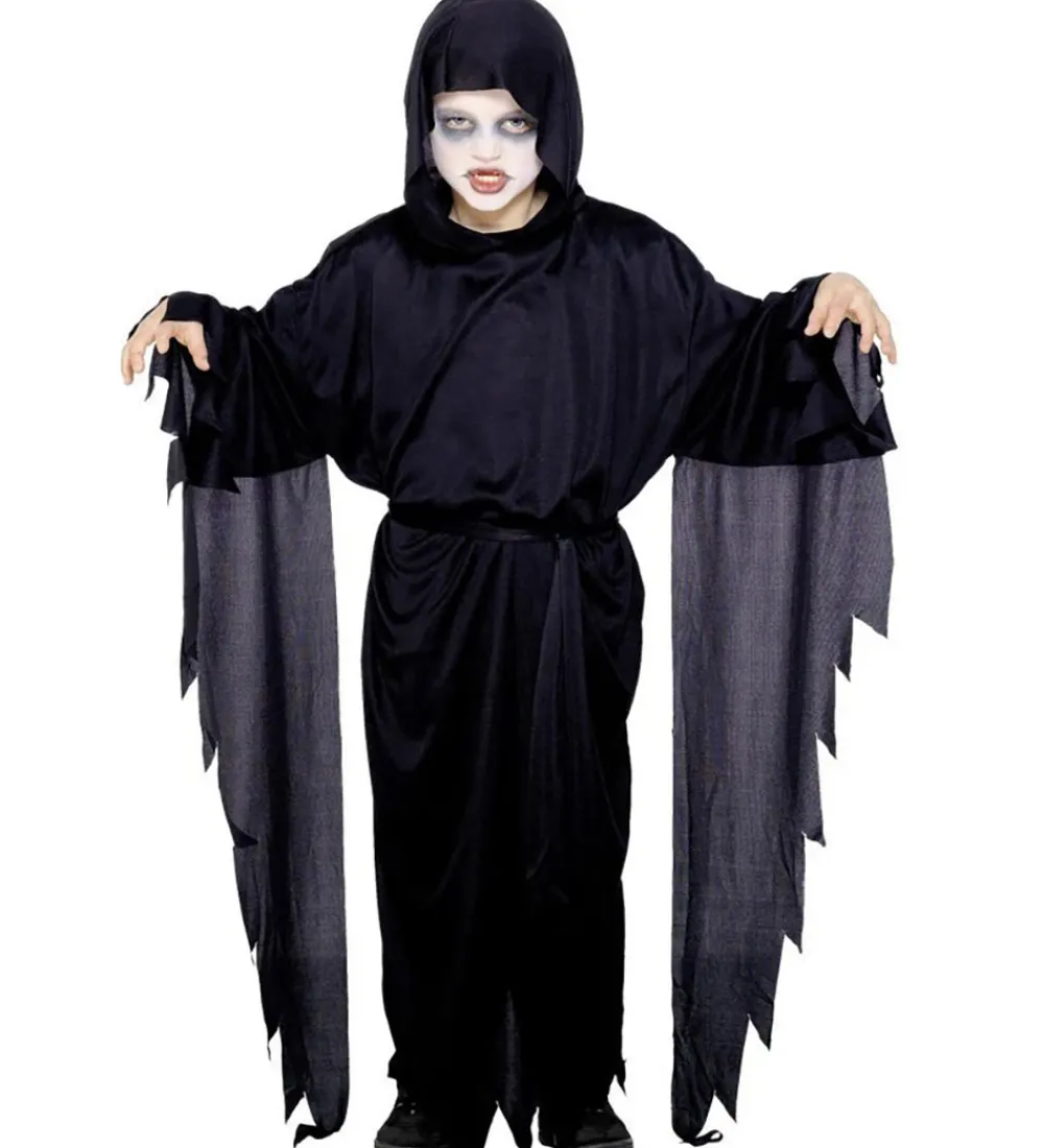 Smiffys kostumet har lange, flagrende ærmer og en hætte der omkranser ansigtet. Udklædningen passer perfekt til halloween, men kan også bruges derhjemme som en god tilføjelse til hverdagens leg.
