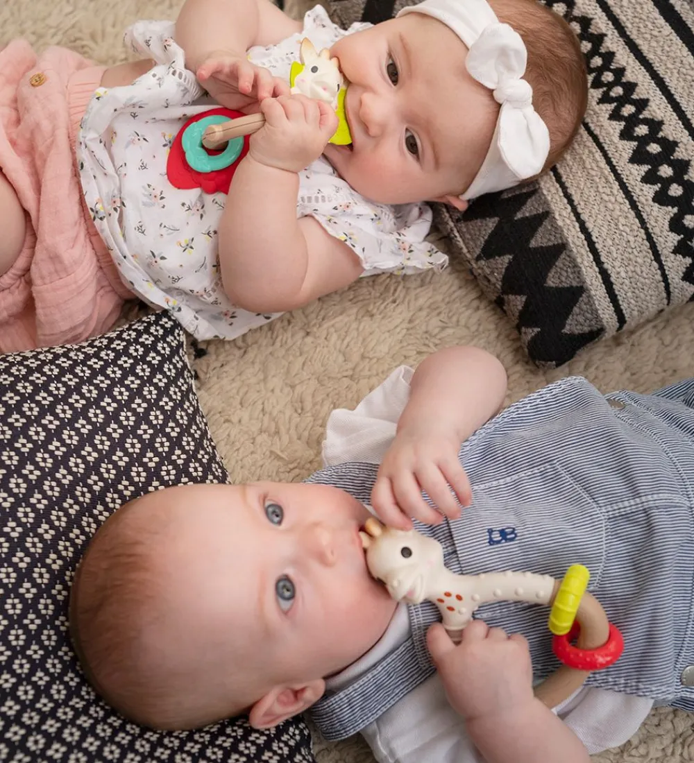 Sophie la Girafe rund udformning og en tekstureret overflade, så den i sig selv også er god mod kløende gummer.