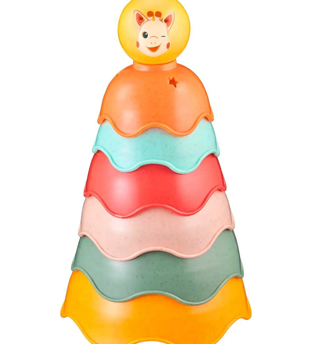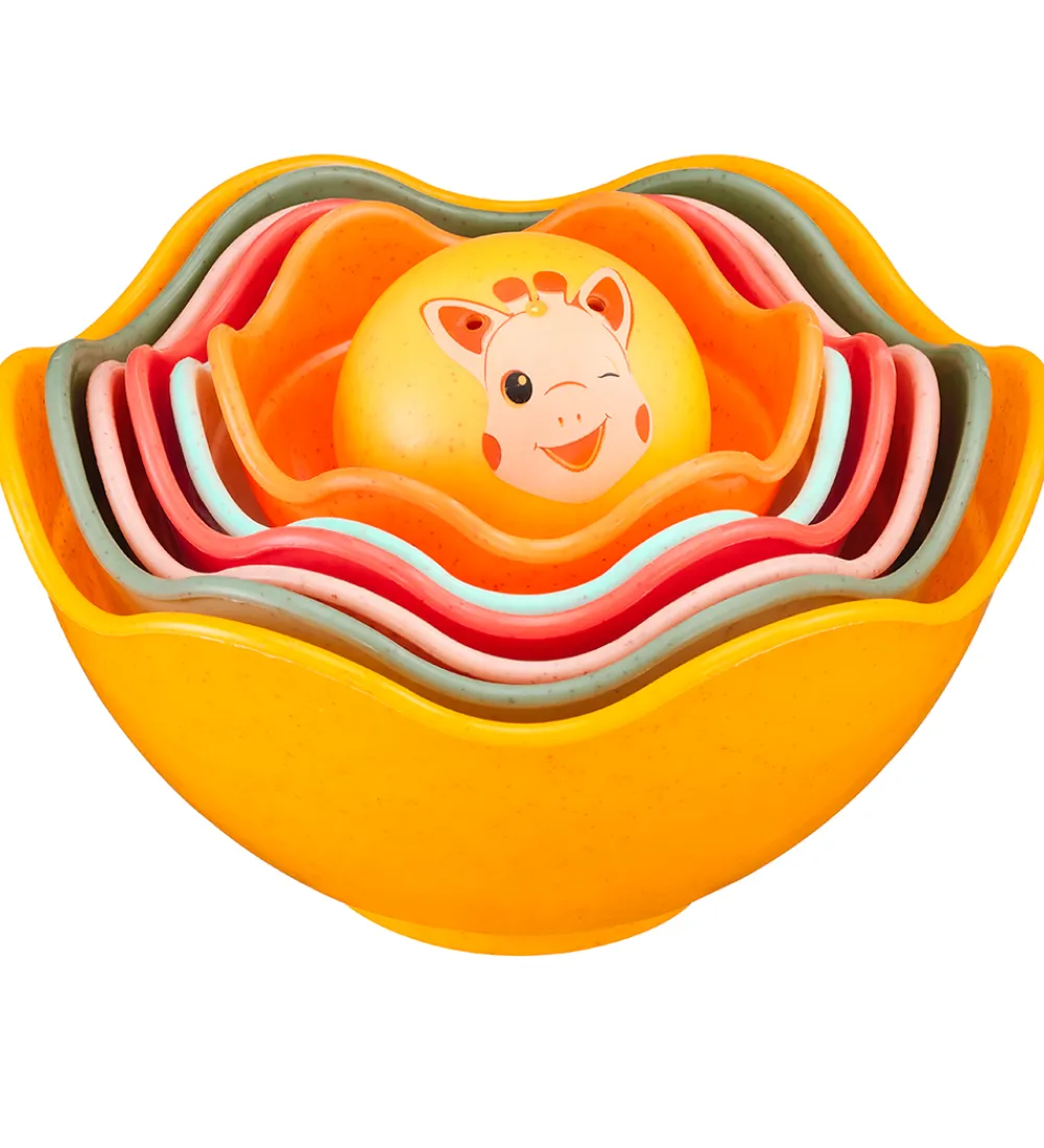 Sophie la Girafe stablelegetøjet består af seks skåle og en kugle til toppen med en klokke. De seks skåle kan stables på flere forskellige og sjove måder og er med til af udvikle barnets finmotorik. Skålene kan have flere funktioner når barnet bliver vokser. På bunden af skålende er forskellige dyr og tal som er ideelt for børn fra 6 mdr. og fra 8 mdr. kan de tages med i badet og fyldes med vand der løber ud i de små huller i bunden.