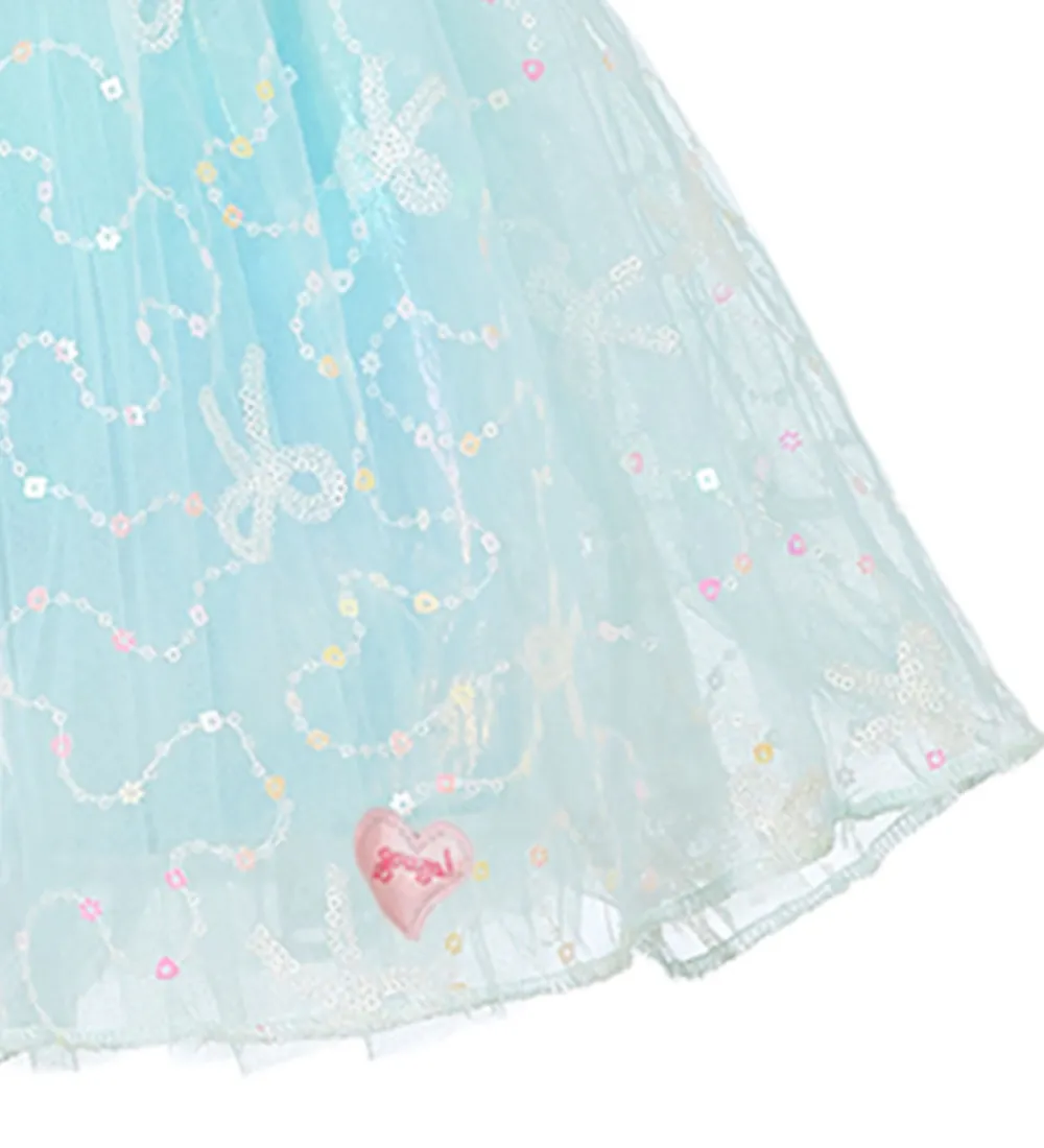 Fin Souza udklædning i form af en nederdel i lyseblå. Nederdelen har et lag tekstil inderst i blå med holografisk effekt. Yderst er der flere lag tyl med palietter og sløjfer. I talejn er der en elastikkant, som kan justeres med indvendige knapper.