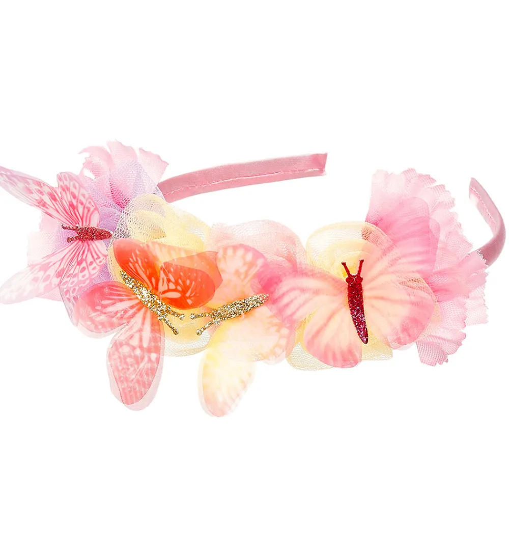 Souza hårbøjlen er rosa og med blomster og sommerfugle og er perfekt tilbehør til udklædningen.
