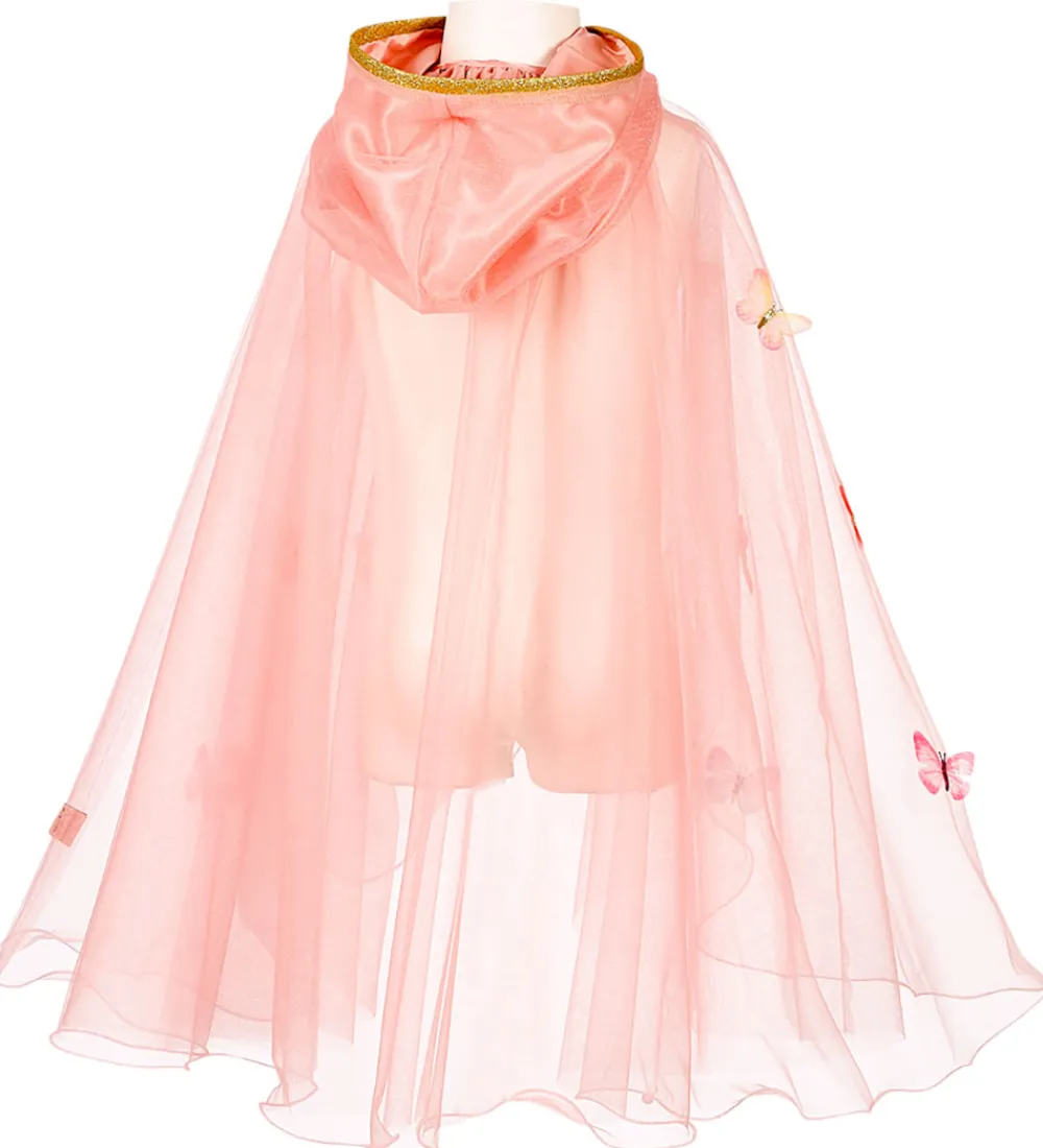 Souza udklædningen er rosa med et tylskørt dekoreret med smukke sommerfugle. Hætten er kantet med guldbånd, der giver et overdådigt præg.