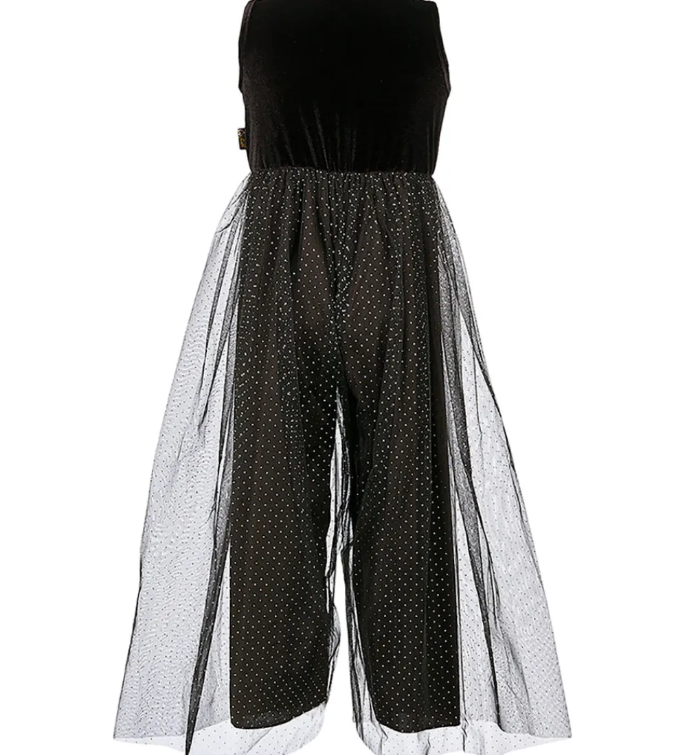 Fin Souza udklædning i form af et heksekostume i modellen Bella med en buksedragt, der har tylskørt.
