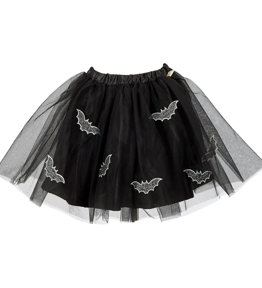 Souza udklædningen er sort med et tylskørt dekoreret med flagermus i sølvglimmer.