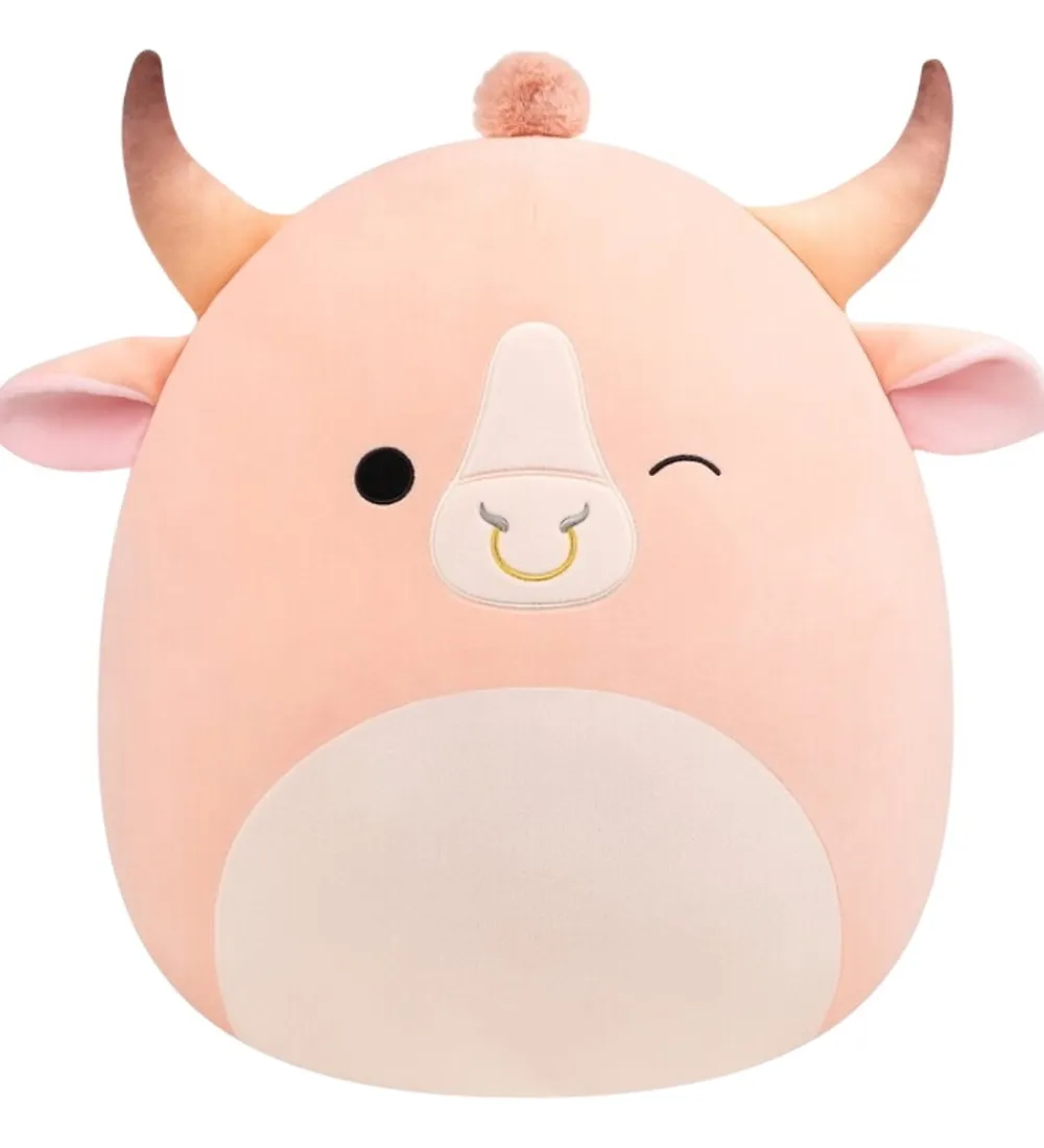 Sjov Squishmallows bamse i form af den rosabeige tyr Howland.