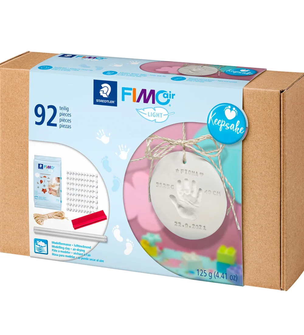 Staedtler FIMO kreasættet er nemt og sjovt at benytte. Med kreasættet er der let at skabe minder for livet. Sættet skal blot lufttørres, hvilket kan tage op til 24 timer før det er hærdet. Når dekorationen er er hærdet, kan du file, bore, slibe og male eller lakerede i emnet.