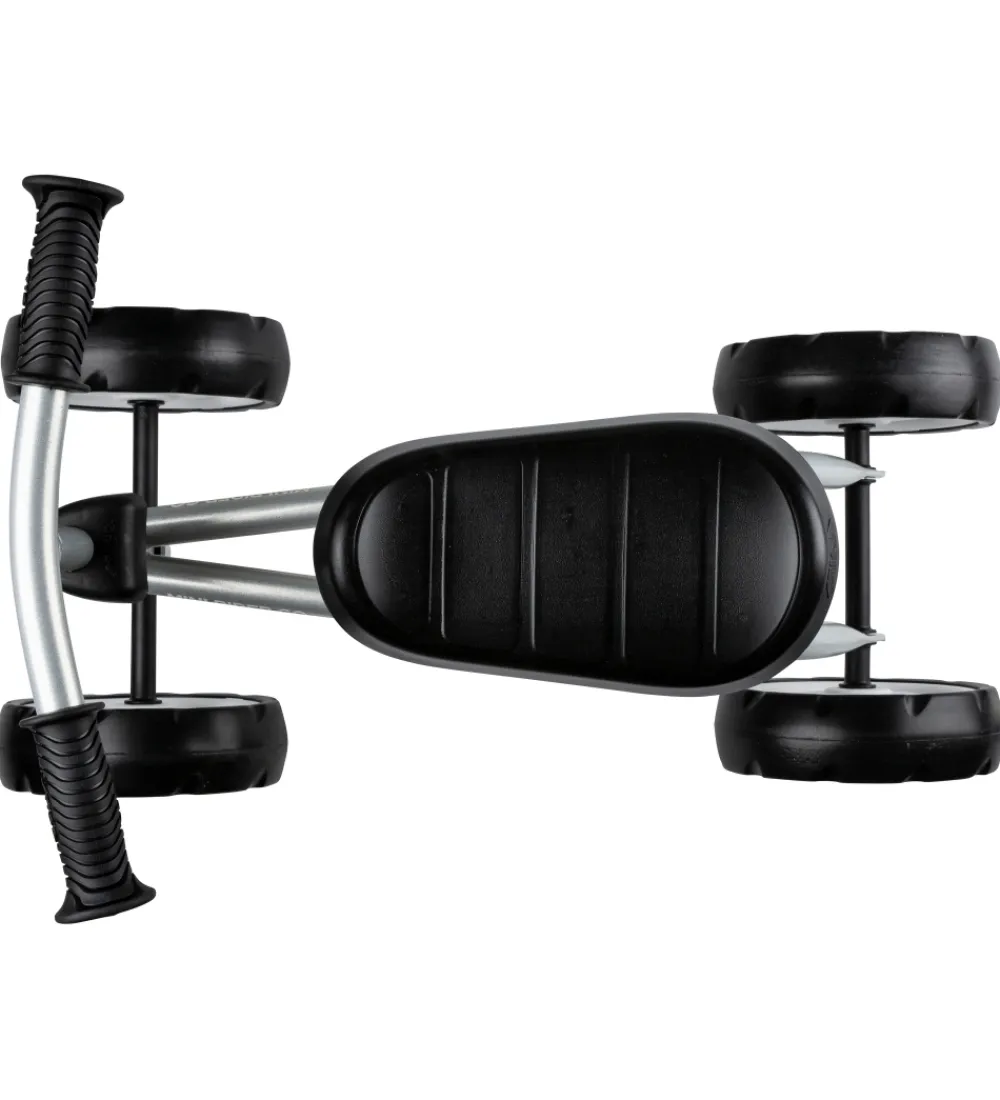 Lækker Stiga løbecykel med fire hjul i en sølv stålramme.