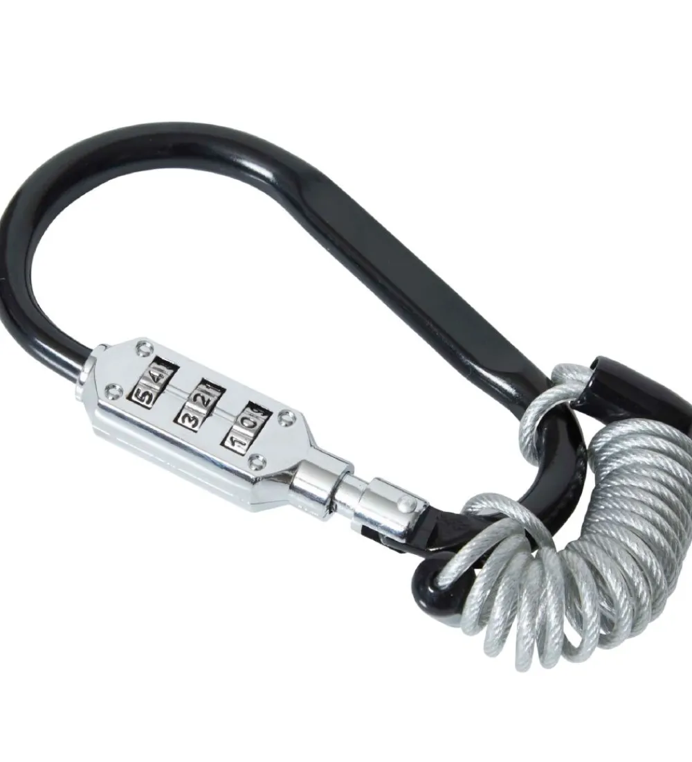 Streetsurfing løbehjulslås med en flexibel wire, der let kan komme ind i smalle åbninger. Løbehjulslåsen har en stor karabinhage med en talkode, så man slipper for at bære rundt på en nøgle.