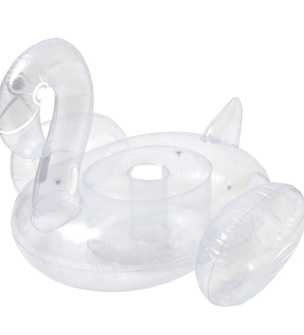 Fin SunnyLife badedyr i transparent med form som en flamingo.
