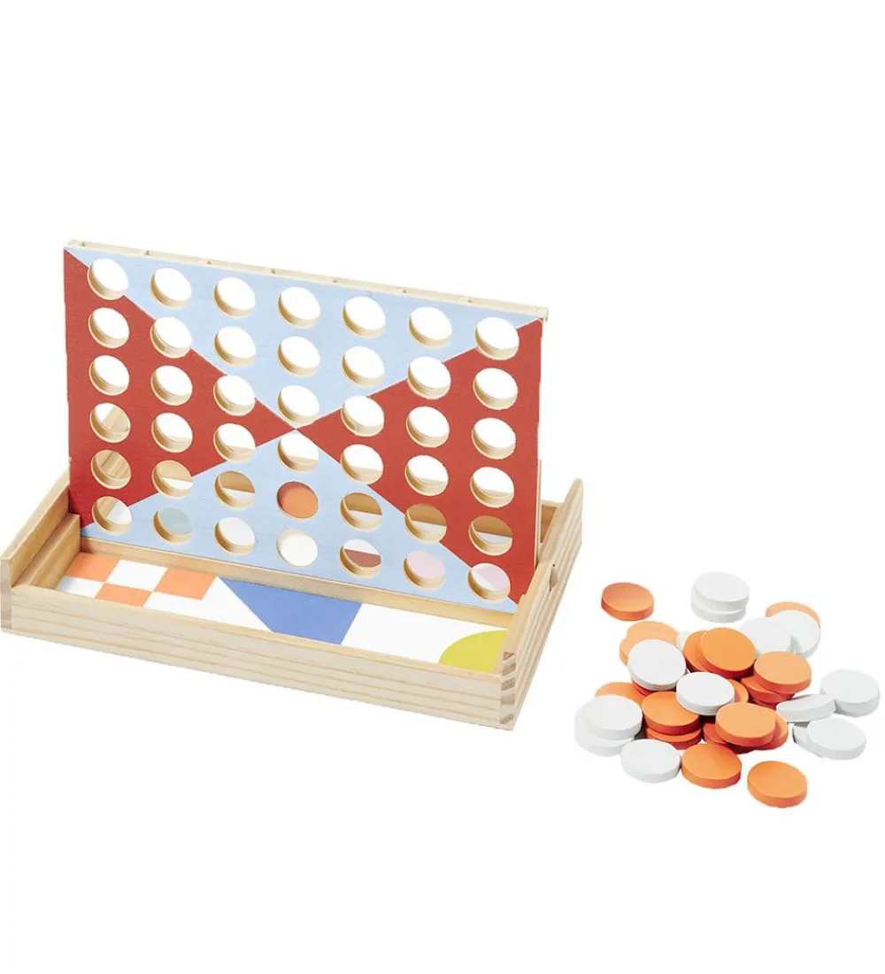Sjovt SunnyLife rejsespil i træ, fire på stribe, der går ud på at få fire af sine brikker på stribe. Spillet indeholder en sammenfoldelig spilleplade og 42 runde jetoner, hvor halvdelen er i naturlig træ og den anden halvdel er blå.