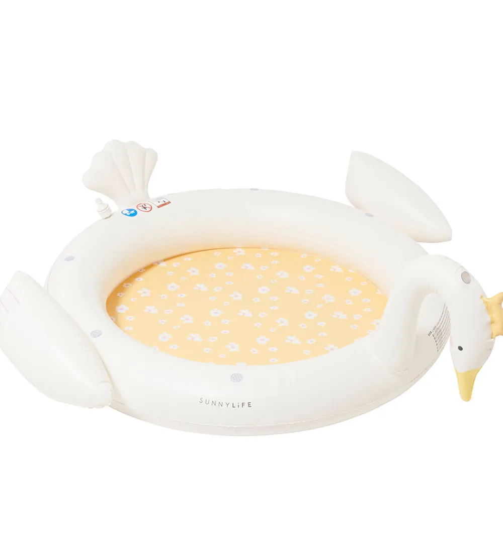 Sjov SunnyLife sprinklermåtte med form som en hvid svaneprinsesse med guldkrone.