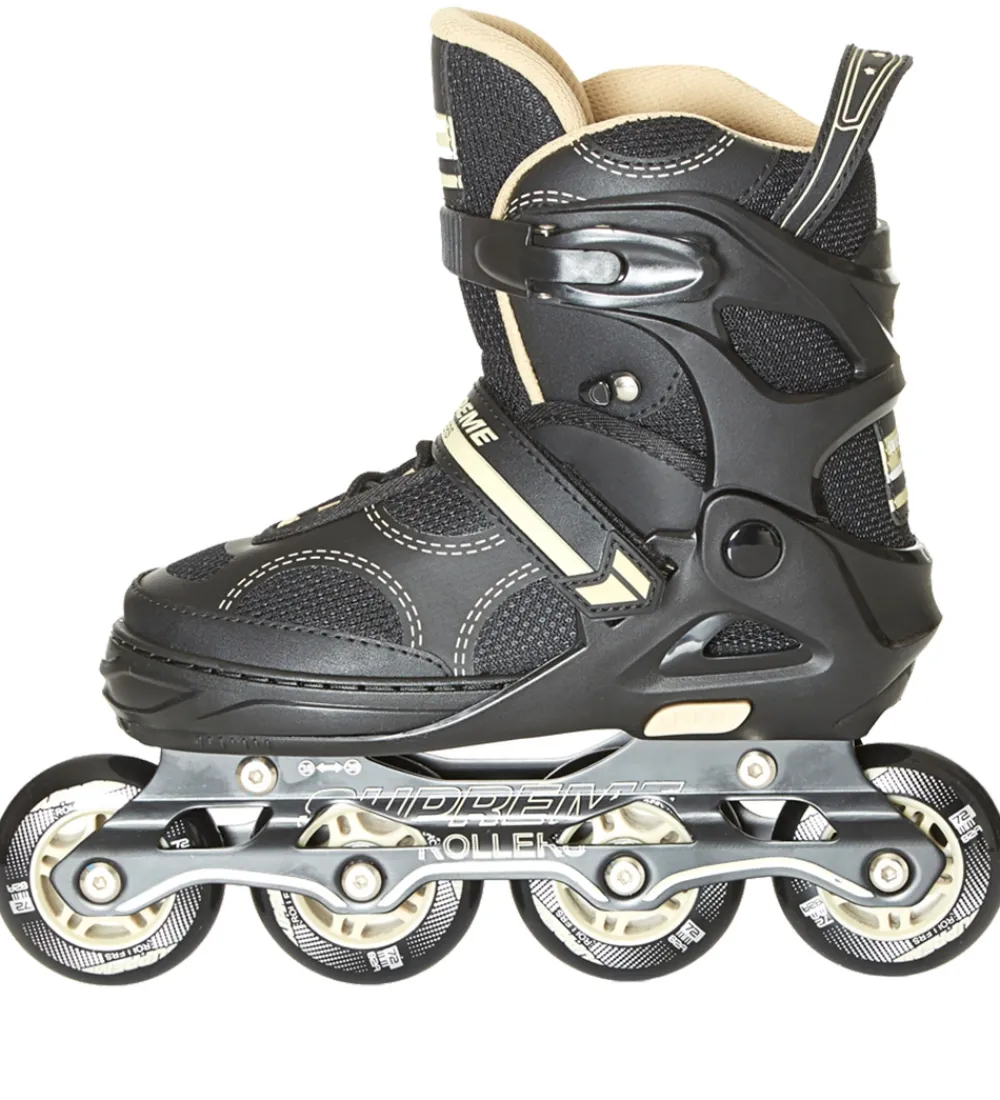 Seje Supreme rulleskøjter i sort med guldfarvede detaljer og guldfarvet for.