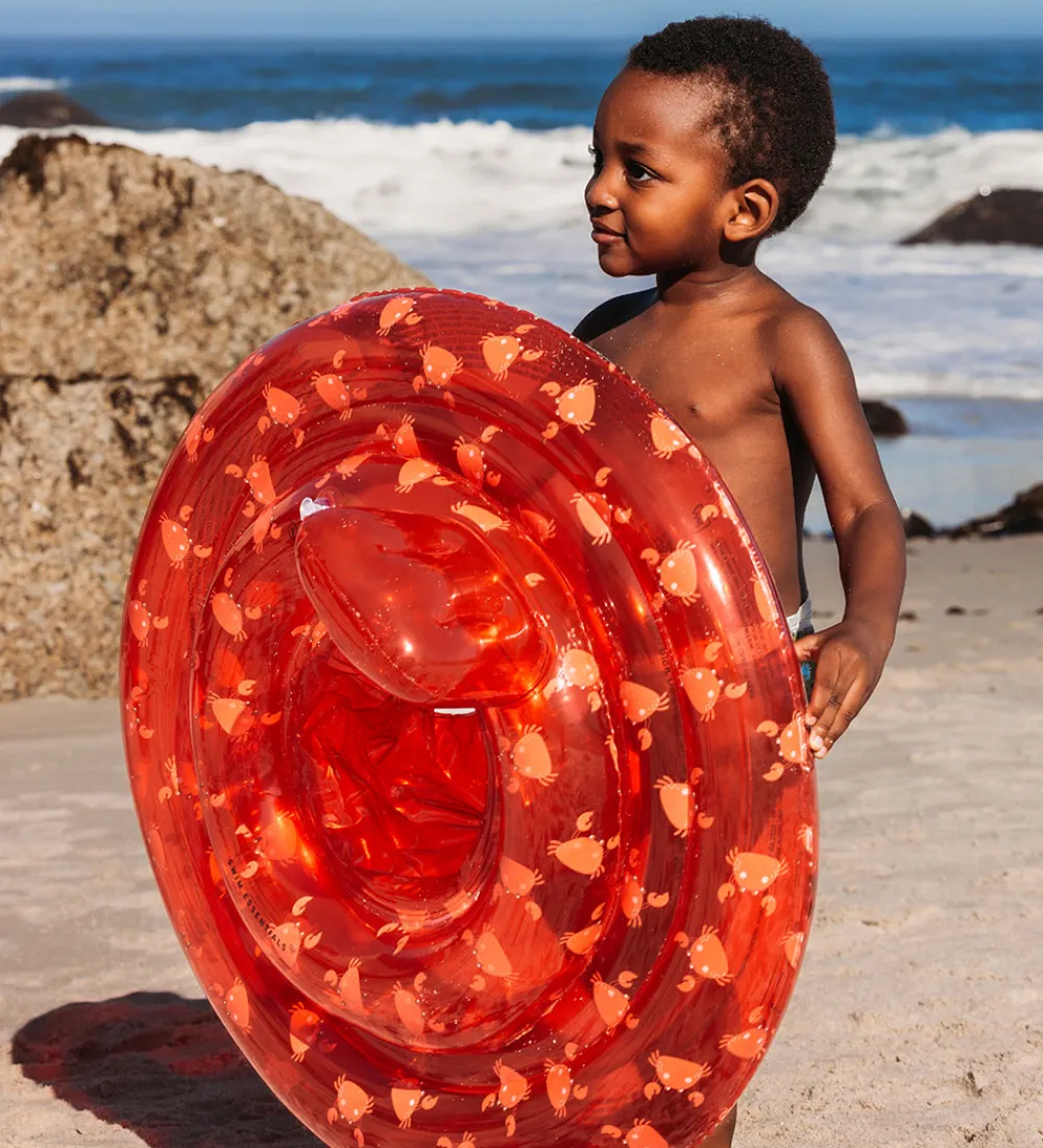 Flot Swim Essentials badering i en semitransparent rød farve med print af røde krabber.