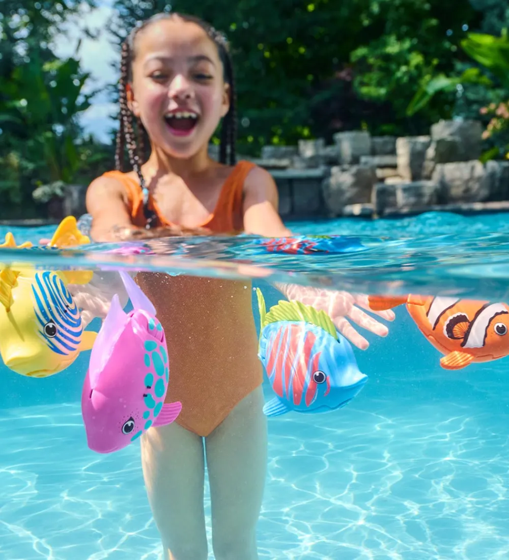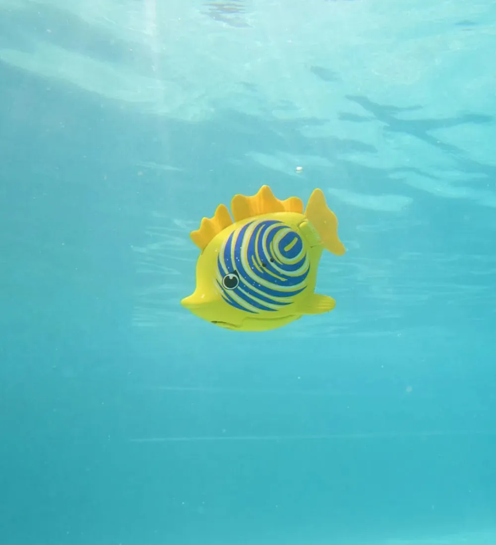 Swimways badelegetøjet sørger for underholdning og leg i badet eller i poolen. Fisken svømmer af sig selv og med naturlige bevægelser, og den gør det helt af sig selv, så snart den kommes i vandet.