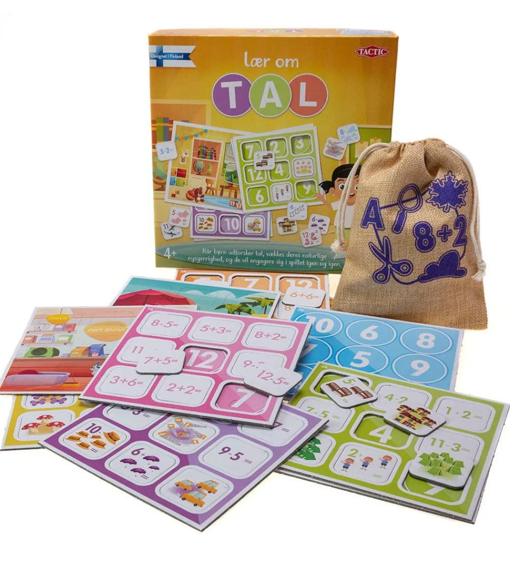 Sjovt TACTIC brætspil med titlen “Lær om tal”.