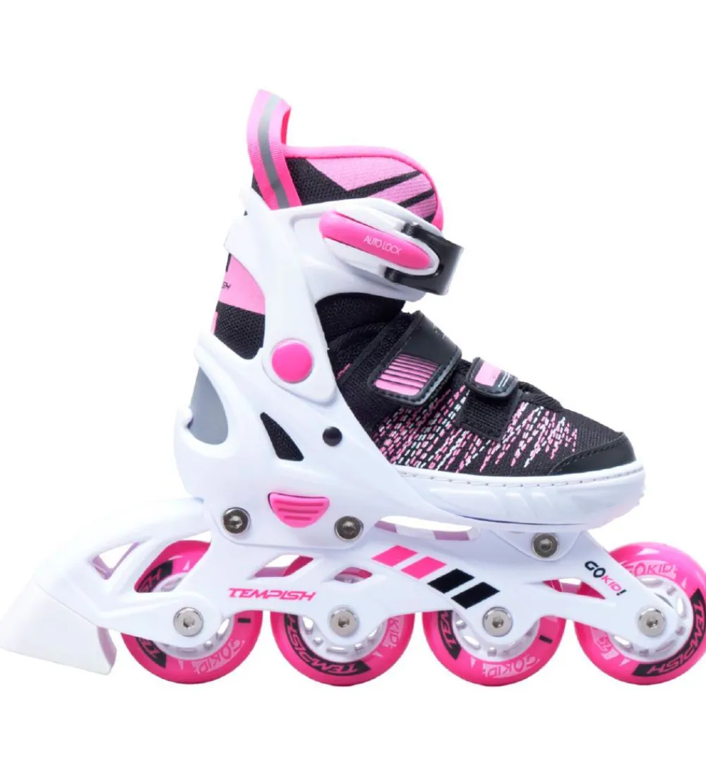 Tempish rulleskøjterne er en inliners-model. Skaftet er dels af blødt mesh og dels af en fast skal, så rulleskøjterne både er behagelige og stabile på samme tid. Rulleskøjterne lukkes med to velcroremme og en plastspænde, så de er nemme at få af og på.