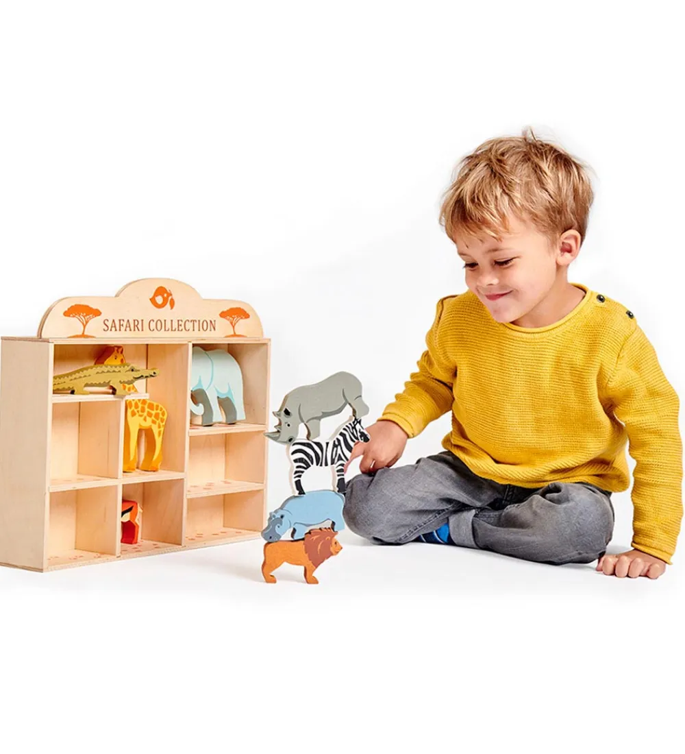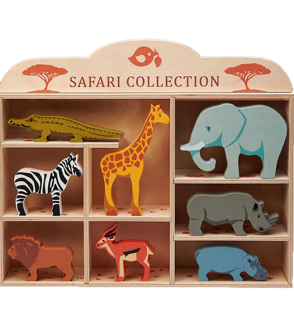 Fint Tender Leaf trælegetøj i naturlig træ og fine farver, som er formet som følgende savannedyr: