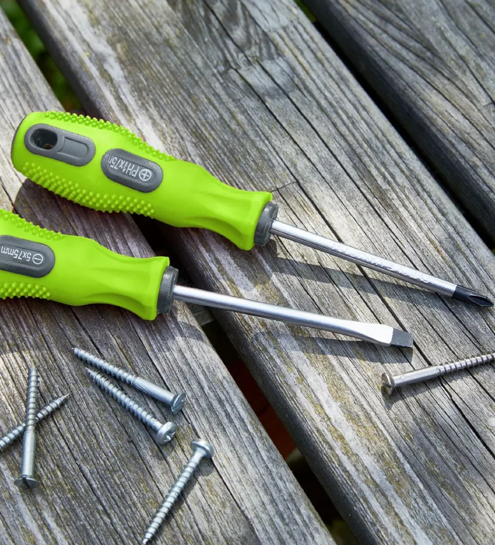Haba Terra Kids sættet består af en stjerneskruetrækker og en en almindelig skuretrækker med en lige skærv, og begge skruetrækkere har magnetiske spidser, der holder skruen på plads. Værktøjet har et praktisk gummigreb med dupper på, som giver et godt greb. Skruetrækkerne er små, lette, og de har en ergonomisk udforming, der passer til små hænder.