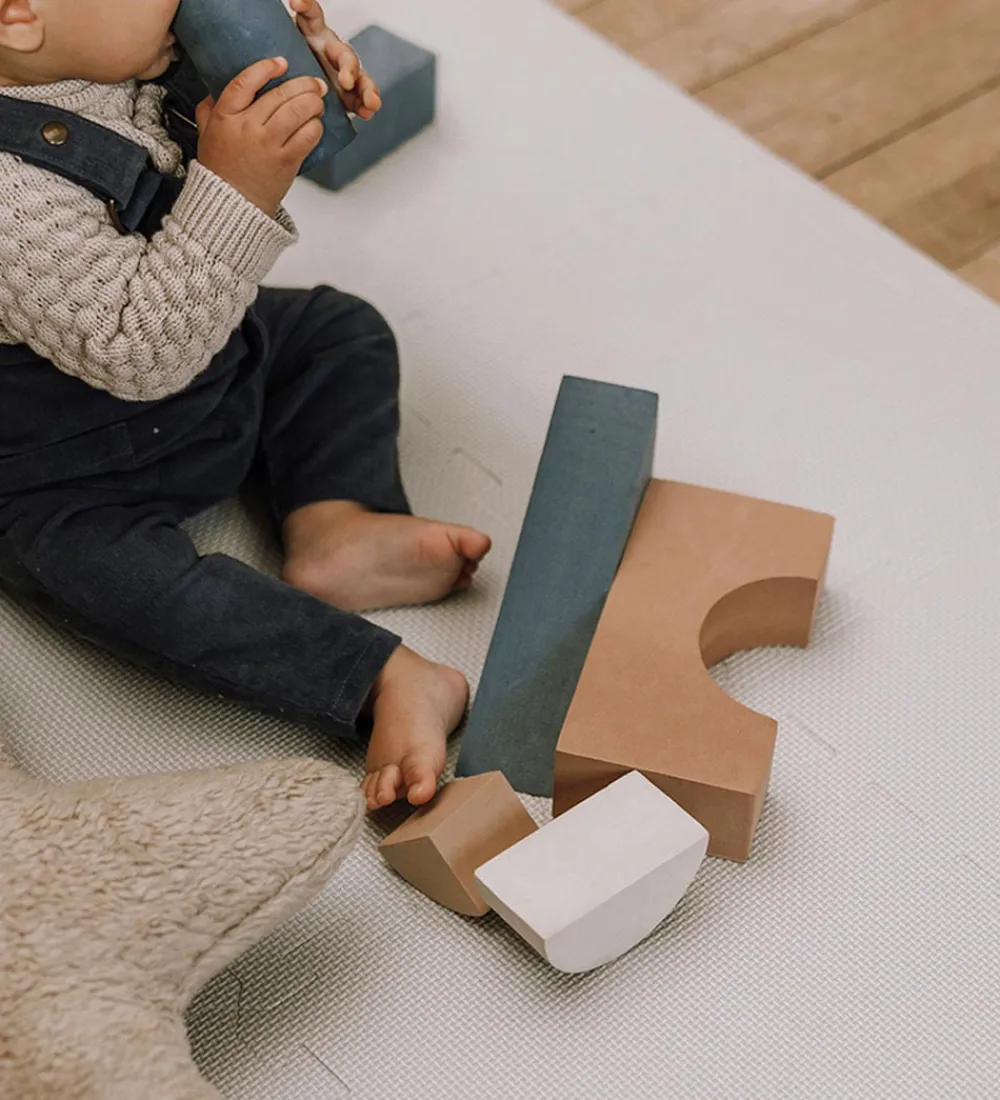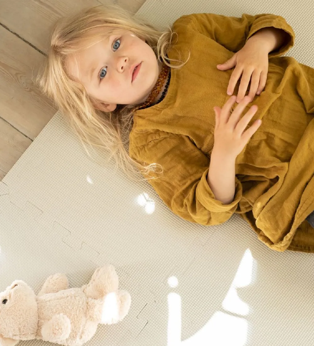 Thats Mine skumgulvet er kvadratisk, og det består af 9 skumbrikker, som kan sættes sammen som et puslespil. Skummet er fast, men samtidig blødt, så det giver en god støtte for det lille barn at ligge på. Det er stødabsorberende, og det beskytter mod kulde og træk fra gulvet.