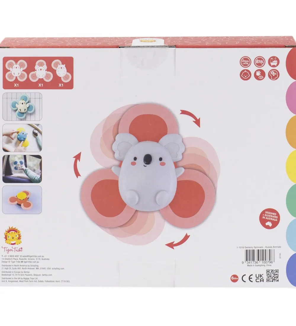 Sjovt Tiger Tribe aktivitetslegetøj i form af tre søde spinners med motiver af australske dyr.