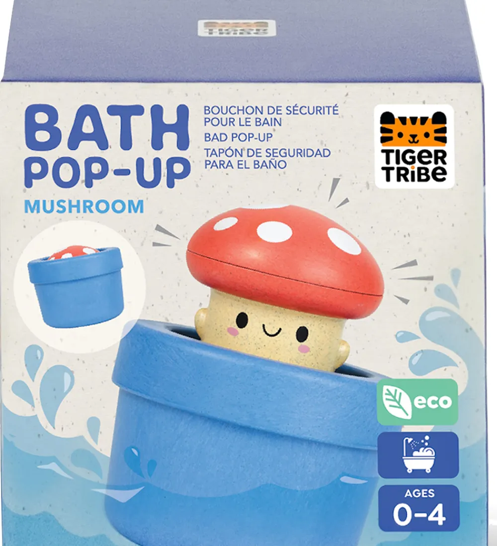 Herligt Tiger Tribe badelegetøj i form af en paddehat, som kommer frem i vandet. Når legetøjet løftes over vandet efterfølgende, kommer der vandstråler ud gennem hullerne i bunden, og paddehatten vender tilbage til sit skjul.