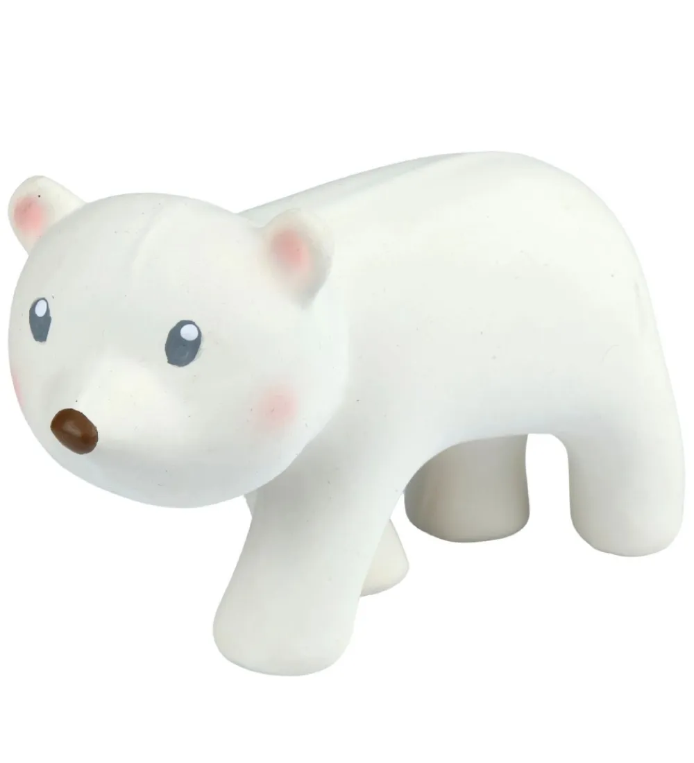Tikiri bidelegetøjet kan tages med i badet, så barnet har en god kammerat med, som altid er klar på lidt spas i vandet. Isbjørnen er i naturgummi og er derfor også perfekt til at lindre de smås gummer, når de klør. Bidedyret har en rangle, som laver beroligende lyde når man ryster det og der er forskellige teksturer. Isbjørnen behøver altså ikke kun at være med i badet.