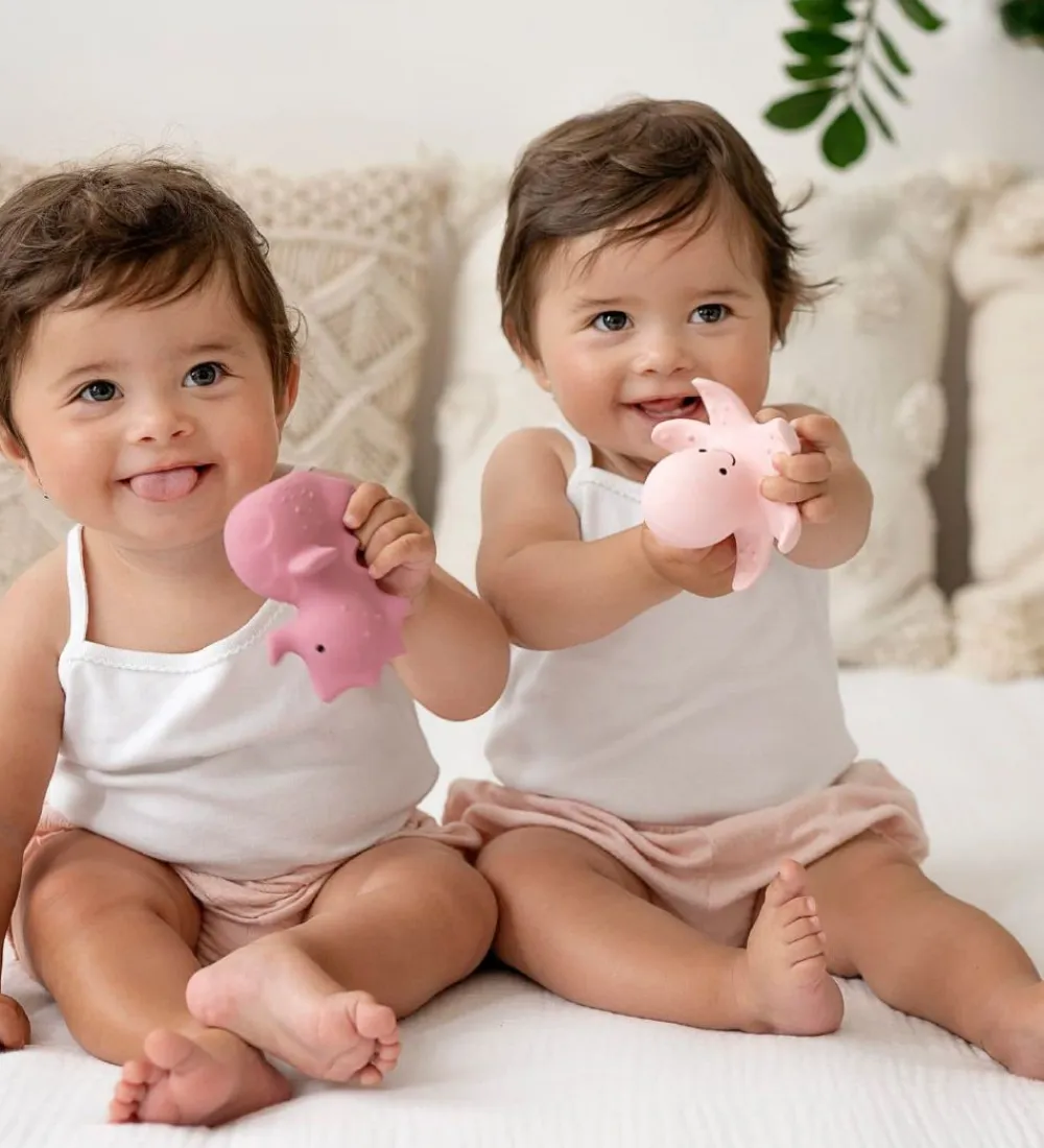 Sødt Tikiri bidedyr i rosa, med form som en søhest.