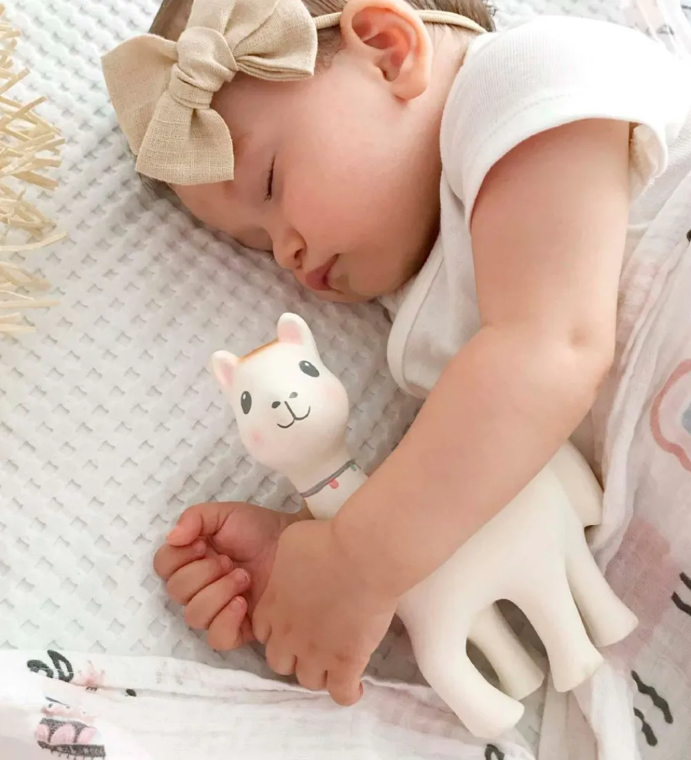Tikiri bideranglen er i naturgummi og er perfekt til at lindre de smås gummer, når de klør. Lamaen har en rangle, som laver beroligende lyde når man ryster den.