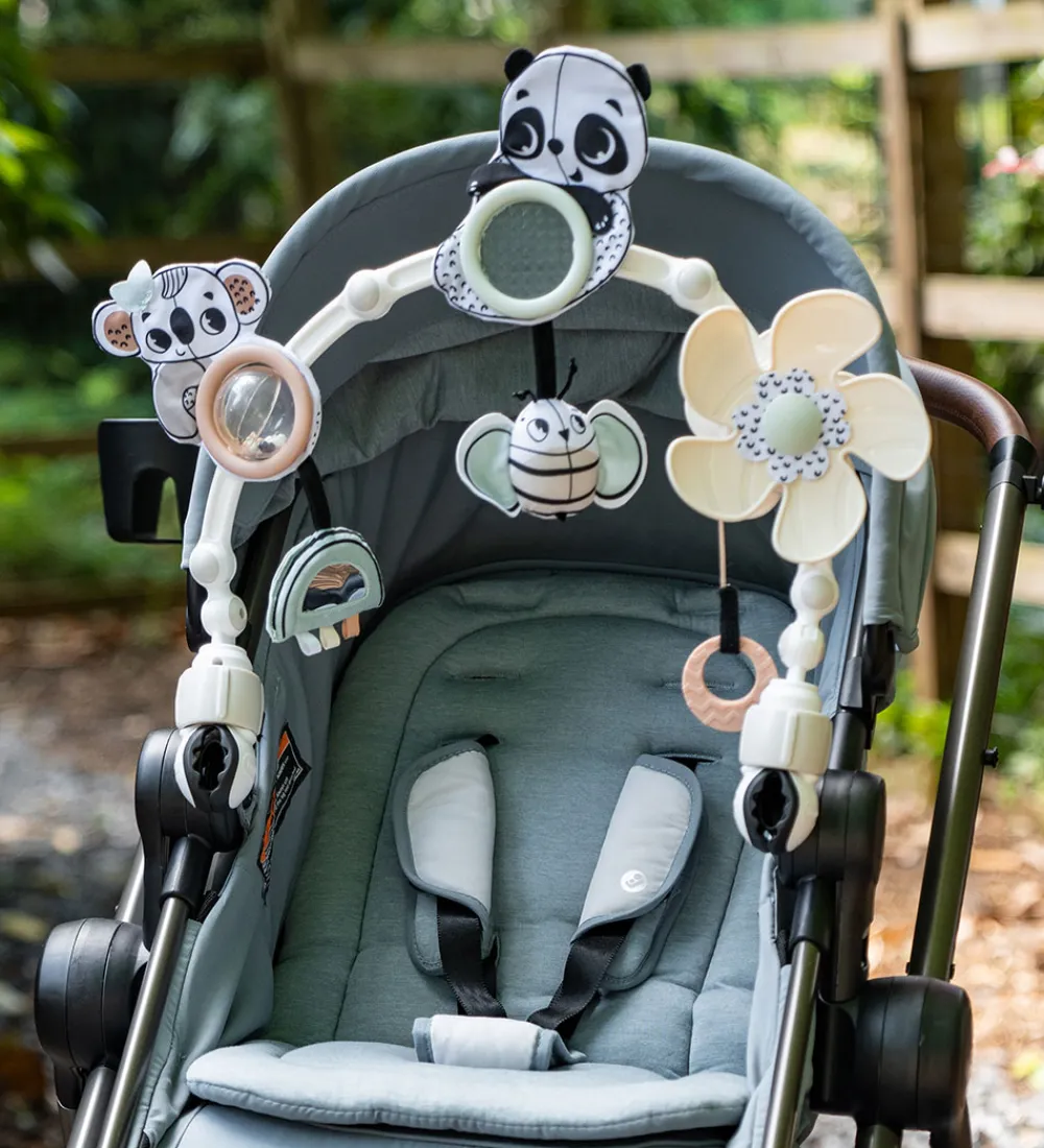 Tiny Love barnevognskæden inkluderer forskellige sanseelementer, der stimulerer barnets nysgerrighed og leg. Den inkluderer blandt andet en flere rangler, knitre papir, en blød silikone bidering, et spejl og meget mere.