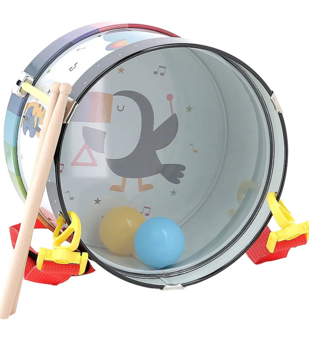 Vilac trommen er sjovt, og det er med til at udvikle barnets motorik samt føle- og høresans. Der er to bolde nede i trommen, så den laver spændende lyde for barnet, hvis den bliver bevæget. Der er en aftagelig strop, så trommen kan bæres omkring halsen.
