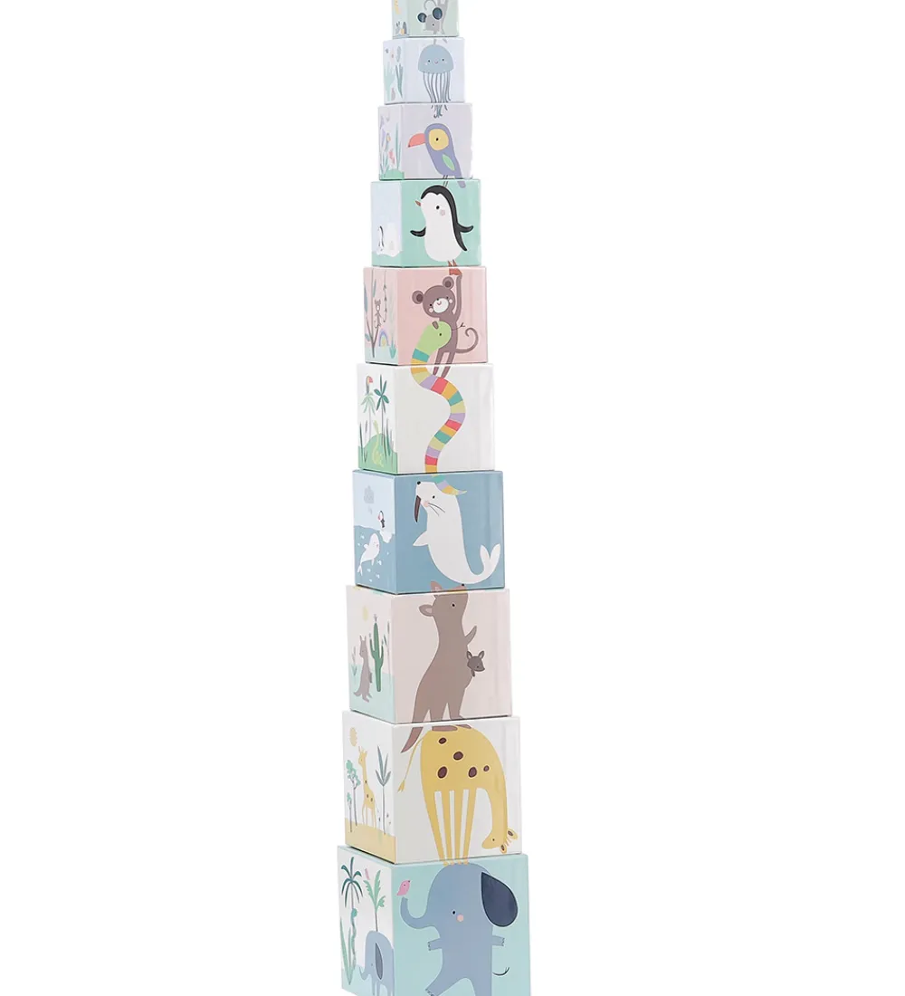 Vilac stableklodserne består af 10 klodser, som kan stables ovenpå hinanden. Klodserne kan bruges som inspiration til læring, leg og motorisk udvikling.