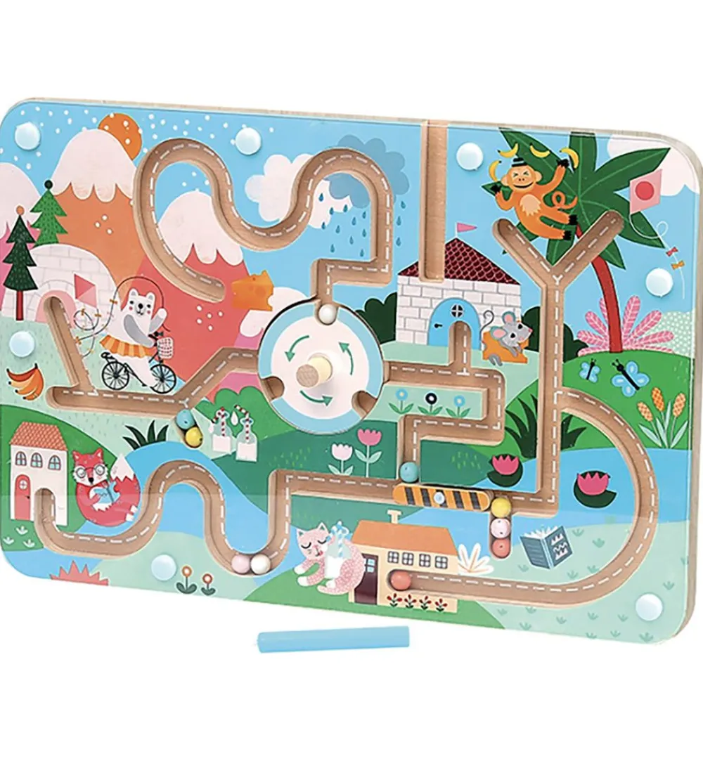 Vilac aktivitetslegetøjet har magnetiske dele og kugler, som med den magiske tryllestav kan ændres på. Fang en kugle med tryllestaven og før dem igennem labyrinten, for at se den store by. Legetøjet er perfekt til de små, da det lærer dem basal problemløsning og kreativitet samt udvikler deres finmotorik.