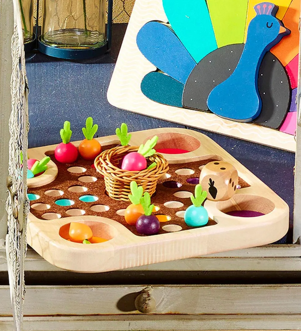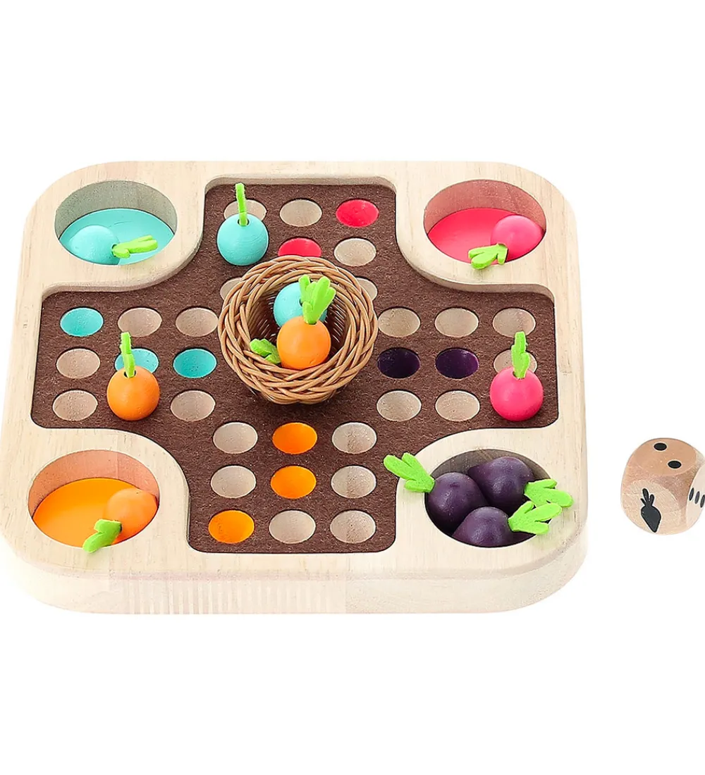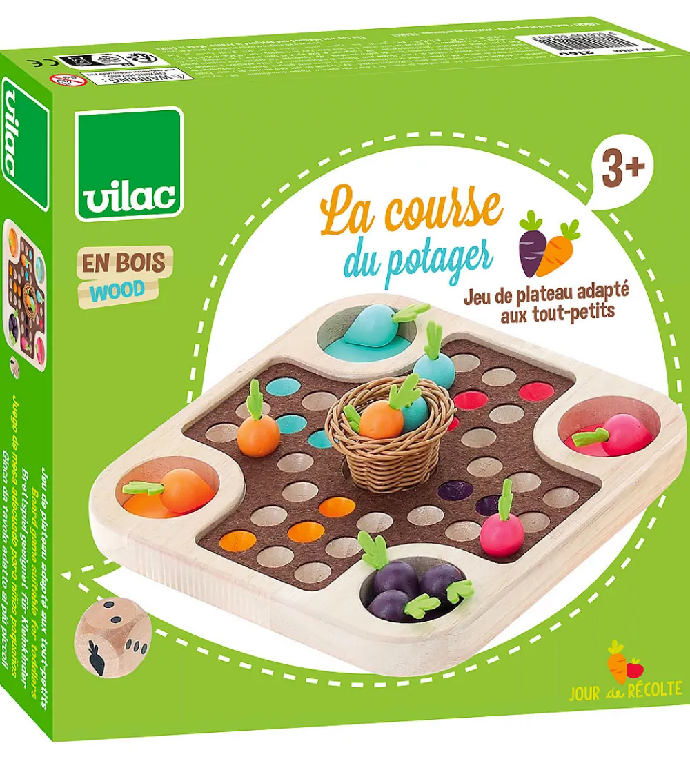 Sjovt Vilac spil i en sjov grøntsagsudgave af spillet Ludo, hvor det er små grøntsager, der skal hjem i kurven.