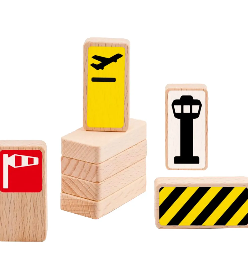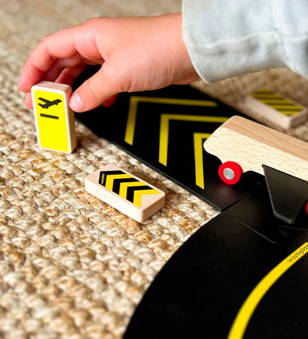 Farverigt Waytoplay legetøj med en række trafikale skiltninger på træklodserne. Designet inkluderer ikoner som fly og vimpler, der sikrer timevis af sjov for de små, og er en perfekt tilføjelse til andre Waytoplay sæt.