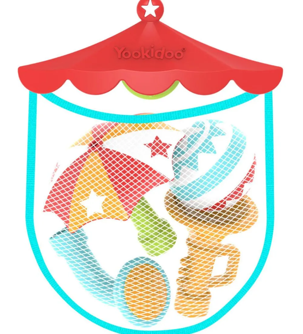 Når barnet ikke bruger badelegetøjet kan alle de ekstra dele lægges i det medfølgende net.