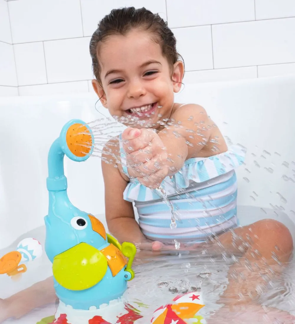Yookidoo badelegetøjet vil med garanti udløse barnets fantasi og kreativitet. Elefanten kan stå i badekarret. De tre dele har forskellige vandeffekter, og de kan sættes fast på elefantens snabel. Elefantens snabel kan også sprøjte vand ud til siderne ved at putte fingeren i den snabel. Elefanten er batteridrevet, og barnet kan derfor overvære et vandshow uden at skulle gøre noget. Elefanten kan tænde og slukkes på det grønne håndtag bagpå.