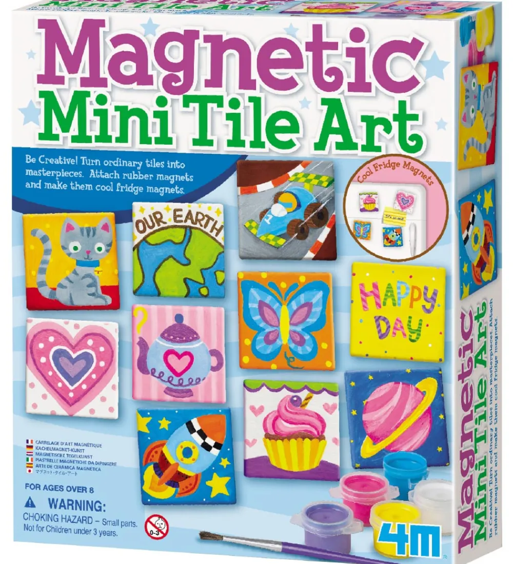4M har gjort det nemt med dette sæt, hvor dit barn kan male på små fliser, som derefter fungerer som køleskabsmagneter og kan pryde køkkenet bagefter.