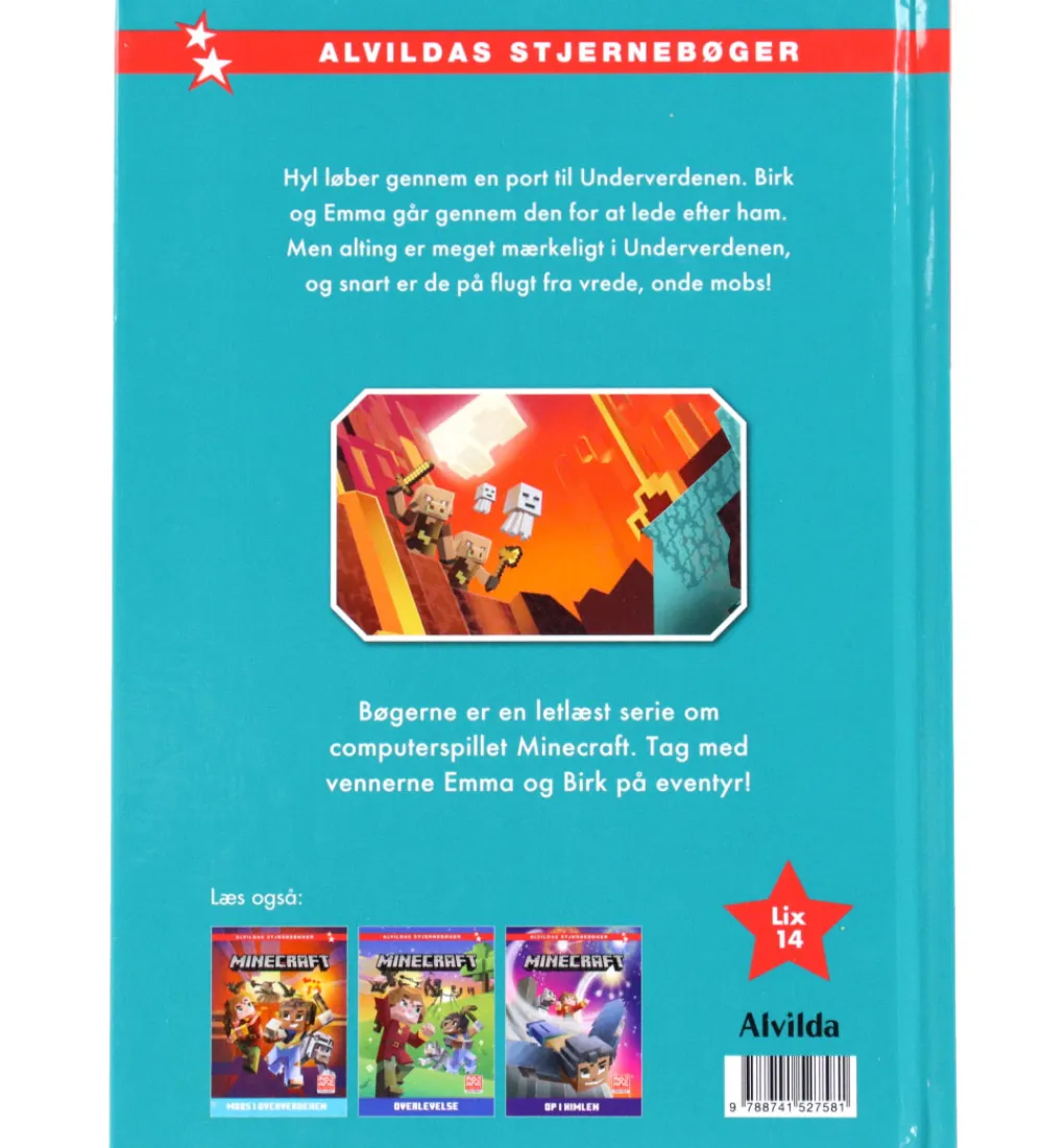 Fin Alvilda bog med titlen “Minecraft – Flugten fra underverdenen”.