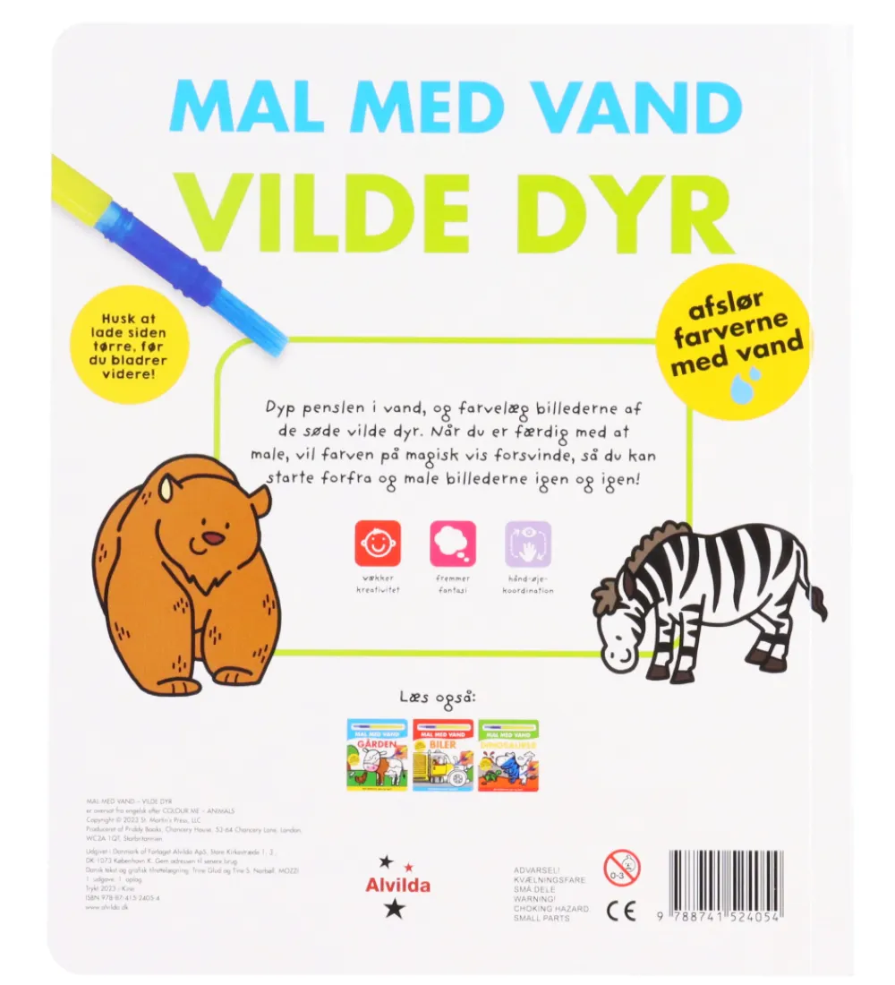 Sjov Alvilda malebog “Vilde Dyr”, med medfølgende pensel.
