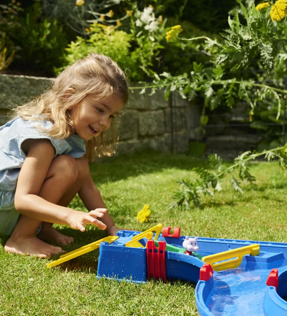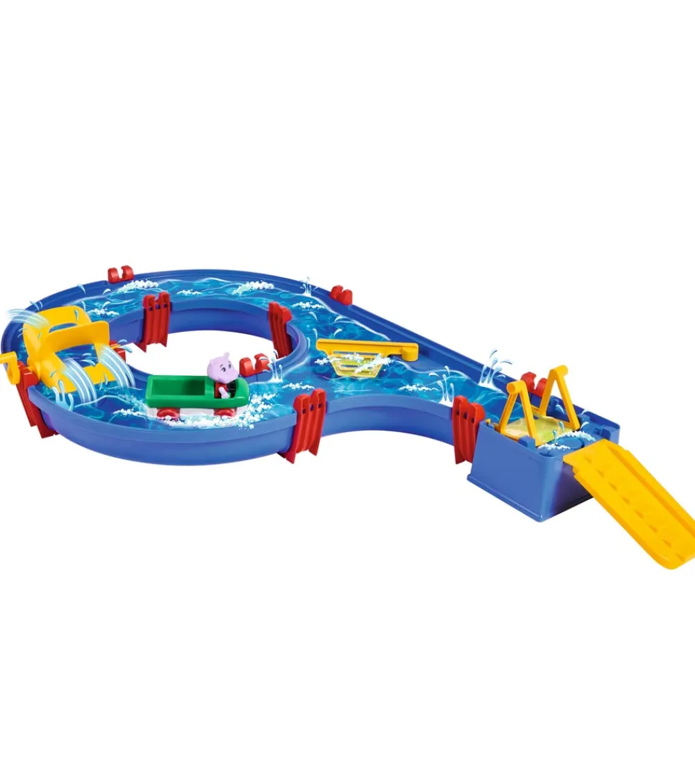 AquaPlay legesættet består af en bane udstyret med forskellige ting, som møller der styrer vandet, og gør det sjovt at lege med. Kom vand i banen, og se hvordan vandet løber.
