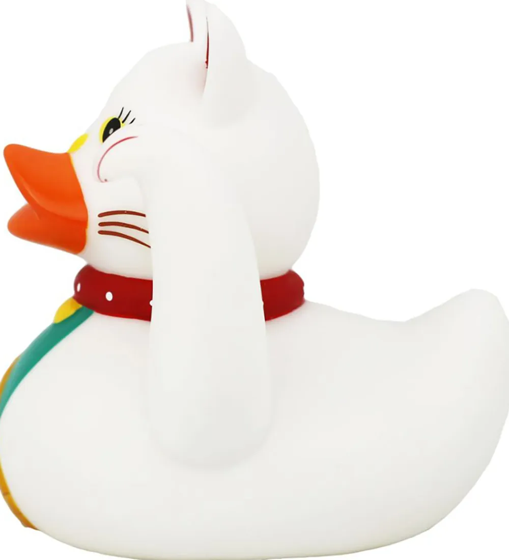 Sød badeand i hvid i form af en vinkende kat.