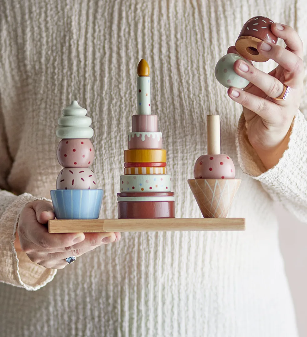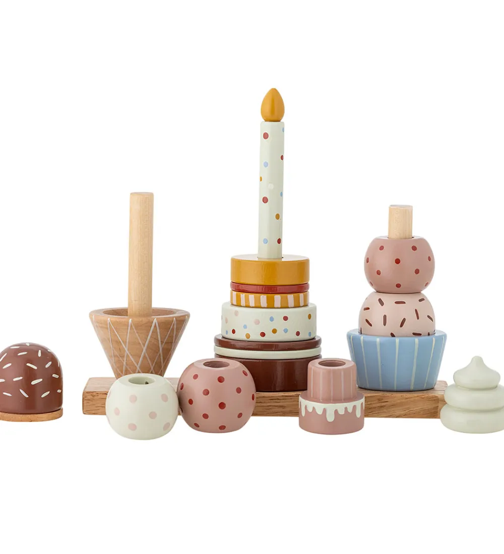 Farverig Bloomingville legemad i en kombination af rosa og brune nuancer med forskellige kager og is. Sættet inkluderer sjove detaljer, der inviterer til fantasifuld leg og kreativ opbygning.