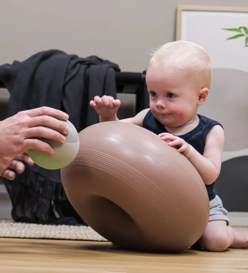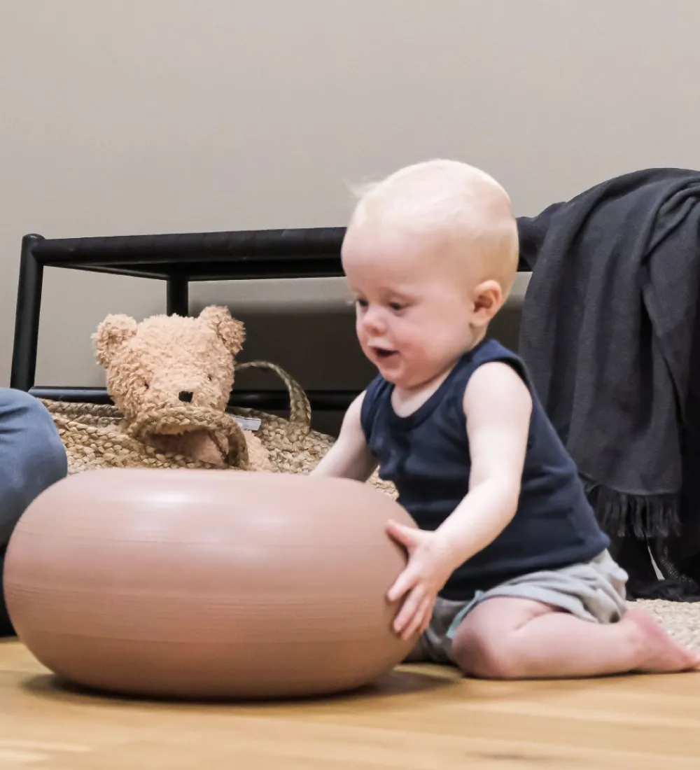 Hvis man trykker donutten ned mod gulvet, opstår der et vacuum, så den sætter sig fast. Så har man en sjov og stabil pude, der fungerer som afsæt til masser af tumleleg. Det er kun fantasien, der sætter grænser.